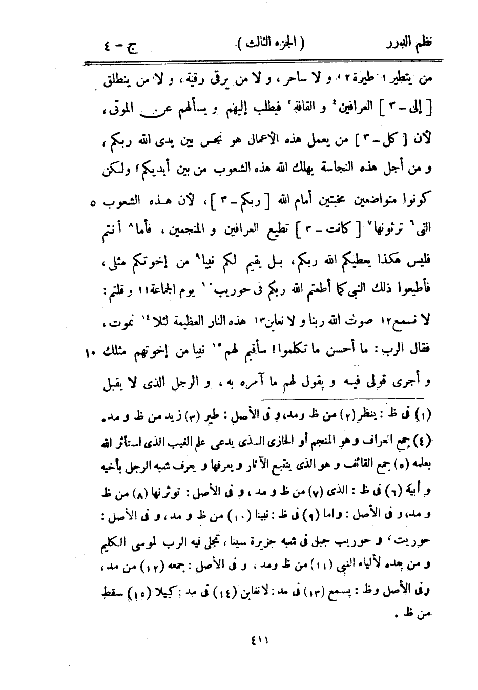 من يتطير طيرة، ولا ساحر، ولا من يرقى رقية، ولا من ينطلق إلى العرافين والقافة فيطلب إليهم ويسألهم عن الموتى، لأن كل من يعمل هذه الأعمال هو نجس بين يدي الله ربكم، ومن أجل هذه النجاسة يهلك الله هذه الشعوب من بين أيديكم؛ ولكن كونوا متواضعين مخبتين أما الله ربكم، لأن هذه الشعوب التي ترثونها كانت تطيع العرافين والمنجمين، فأما أنتم فليس هكذا يعطيكم الله ربكم، بل يقيم لكم نبياً من إخوتكم مثلي، فأطيعوا ذلك النبي كما أطعتم الله ربكم في حوريب يوم الجماعة وقلتم: لا نسمع صوت الله ربنا ولا نعاين هذه النار العظيمة لئلا نموت، فقال الرب: ما أحسن ما تكلموا! سأقيم لهم نبياً من إخوتهم مثلك وأجري قولي فيه ويقول لهم ما آمره به، والرجل الذي لا يقبل