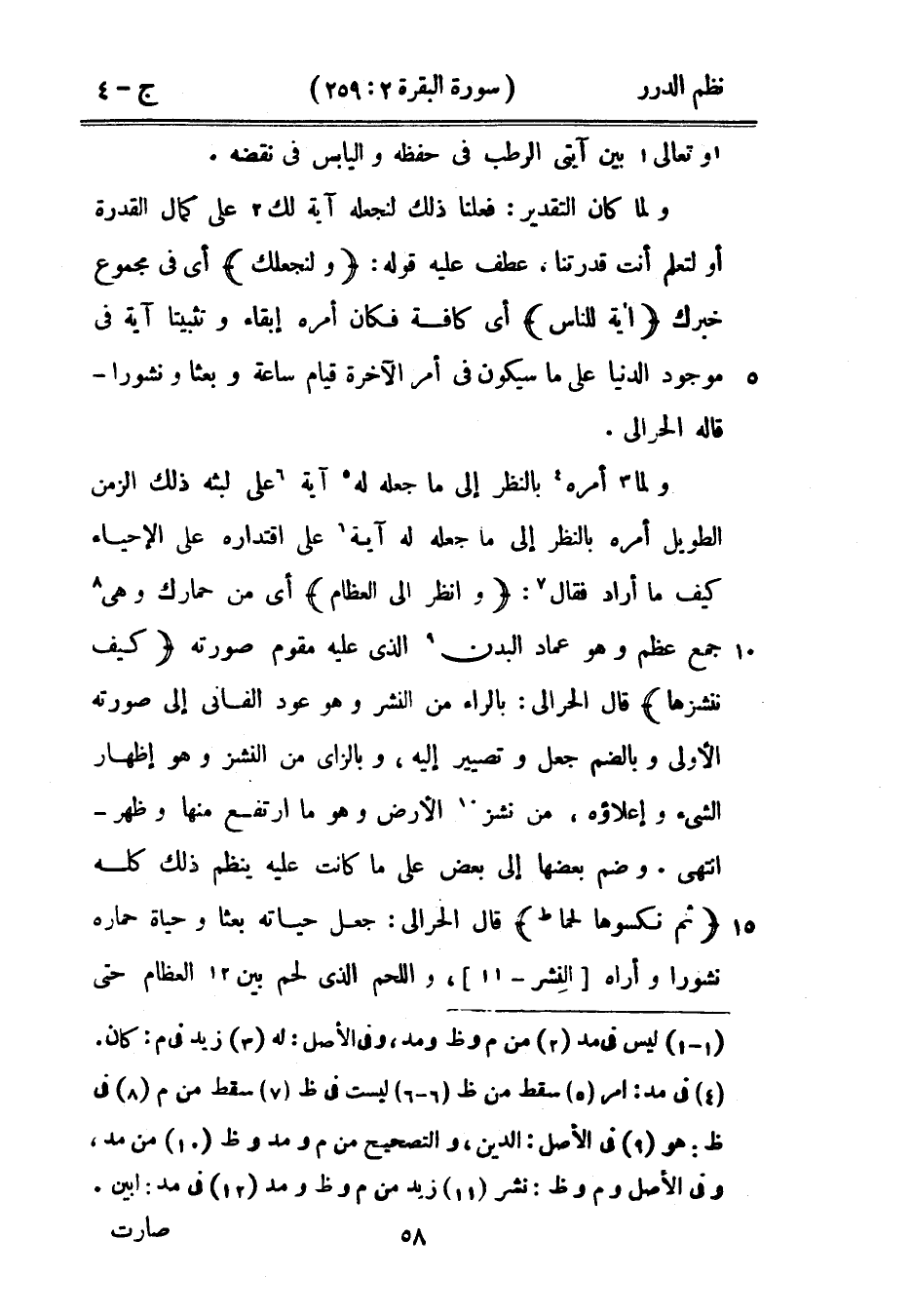 وضم بعضها إلى بعض على ما كانت عليه ينظم ذلك كله {ثم نكسوها لحماً} قال الحرالي: جعل حياته بعثاً وحياة حماره نشوراً وأراه النشر، واللحم الذي لحم بين العظام حتى