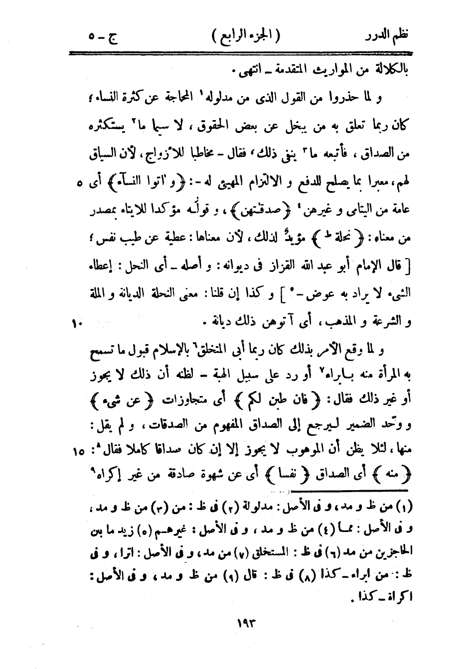 ولما حذروا من القول الذي من مدلوله المحاجة عن كثرة النساء؛ كان ربما تعلق به من يبخل عن بعض الحقوق، لا سيما ما يستكثره من الصداق، فأتبعه ما ينفي ذلك، فقال - مخاطباً للأزواج، لأن السياق لهم، معبراً بما يصلح للدفع والالتزام المهيىء له: {وآتوا النساء} أي عامة من اليتامى وغيرهن {صدقاتهن} ، وقوله مؤكداً للإيتاء بمصدر من معناه: {نحلة} مؤيد لذلك، لأن معناها: عطية عن طيب نفس؛ قال الإمام أبو عبد الله القزاز في ديوانه: وأصله - أي النحل: إعطاء الشيء لا يراد به عوض وكذا إن قلنا: معنى النحلة الديانة والملة والشرعة والمذهب، أي آتوهن ذلك ديانة.