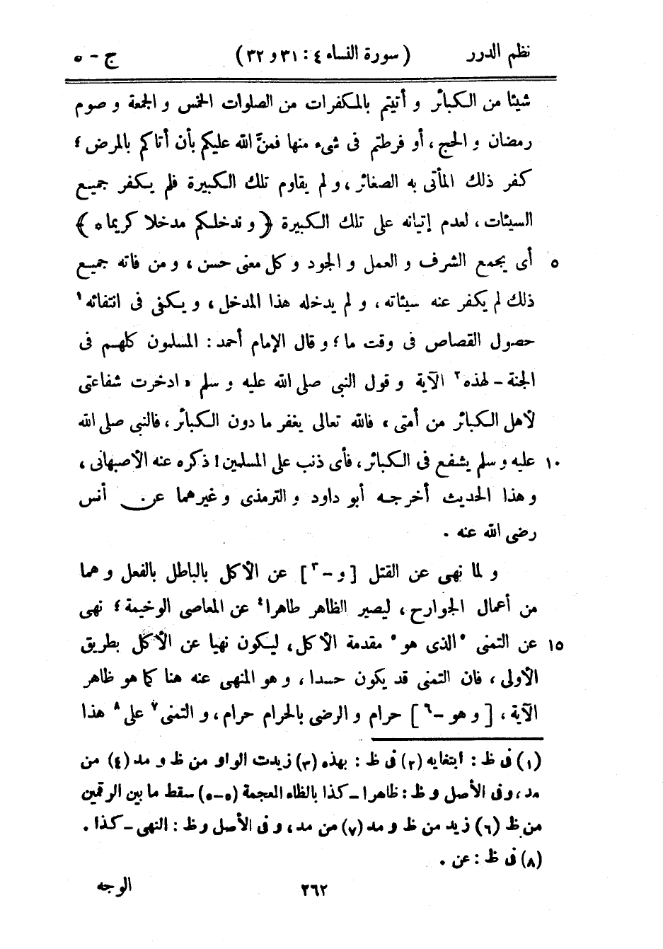 ولما نهى عن القتل وعن الأكل بالباطل بالفعل وهما من أعمال الجوارح، ليصير الظاهر طاهراً عن المعاصي الوخيمة؛ نهى عن التمني الذي هو مقدمة الأكل، ليكون نهياً عن الأكل بطريق الأولى، فإن التمني قد يكون حسداً، وهو المنهي عنه هنا كما هو ظاهر الآية: وهو حرام والرضى بالحرام، والتمني على هذا