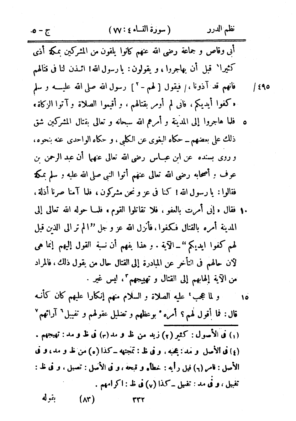 كتاب نظم الدرر في تناسب الآيات والسور (اسم الجزء: 5)