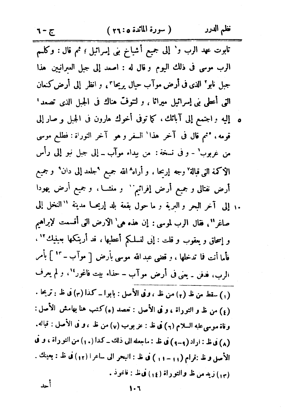 تابوت عهد الرب وإلى جميع أشياخ بني إسرائيل؛ ثم قال: وكلم الرب موسى في ذلك اليوم وقال له: اصعد إلى جبل العبرانيين هذا جبل نابو الذي في أرض موآب حيال يريحا وانظر إلى أرض كنعان التي أعطى بني إسرائيل ميراثاً، ولتتوفّ هناك في الجبل الذي تصعد إليه واجتمع إلى آبائك، كما توفي أخوك هارون في الجبل وصار إلى قومه، ثم قال في آخر هذا السفر وهو آخر التوراة: فطلع موسى من عربوب - وفي نسخة: من بيداء موآب - إلى جبل نبو إلى رأس الأكمة التي قبالة وجه إريحا، وأراه الله جميع جلعد إلى دان وجميع أرض نفتالي وجميع أرض إفرائيم ومنشا، وجميع أرض يهودا إلى آخر البحر والبرية وما حول بقعة بلد إريحا مدينة النخل إلى صاغر، فقال الرب لموسى: إن هذه هي في الأرض التي أقسمت لإبراهيم وإسحاق ويعقوب وقلت: إني لنسلكم أعطيها، قد أريتكها بعينيك، فأما أنت فما تدخلها، وقضى عبد الله موسى بأرض موآب بأمر الرب، فدفن - يعني في أرض موآب - حذاء بيت فاغور، ولم يعرف