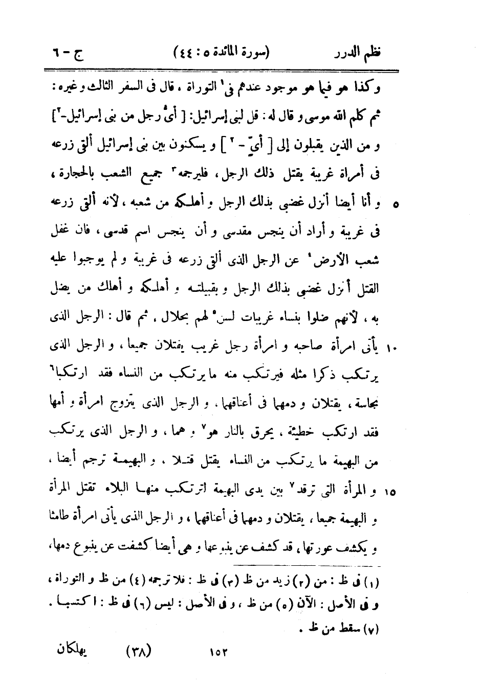 وكذا هو فما هو موجود عندهم في التوراة، قال في السفر الثالث وغيره: ثم كلم الله موسى وقال له: قل لبني إسرائيل: أيُّ رجل من بني إسرائيل ومن الذين يقبلون إلى أيّ ويسكنون بين بني إسرائيل ألقى زرعه في امرآة غريبة يقتل ذلك الرجل فليرجمه جميع الشعب بالحجارة، وأنا أيضاً أنزل غضبي بذلك الرجل وأهلكه من شعبه، لأنه ألقى زرعه في غريبة وأراد أن ينجس مقدسي وأن ينجس اسم قدسي، فإن غفل شعب الأرض عن الرجل الذي ألقى زرعه في غريبة ولم يوجبوا عليه القتل أنزل غضبي بذلك الرجل وبقبيلته وأهلكه وأهلك من يضل به، لأنهم ضلوا بنساء غريبات لسن لهم بحلال، ثم قال: الرجل الذي يأتي امرأة صاحبه وامرأة رجل غريب يقتلان جميعاً، والرجل الذي يرتكب ذكراً مثله فيرتكب منه ما يرتكب من النساء فقد ارتكبا نجاسة، يقتلان ودمهما في أعناقهما، والرجل الذي يتزوج امرأة وأمها فقد ارتكب خطيئة، يحرق بالنار هو وهما، والرجل الذي يرتكب من البهيمة ما يرتكب من النساء يقتل قتلاً، والبهيمة ترجم أيضاً، والمرأة التي ترقد بين يدي البهيمة لترتكب منها البلاء تقتل المرأة والبهيمة جميعاً، يقتلان ودمهما في أعناقهما، والرجل الذي يأتي امرأة طامثاً ويكشف عورتها، قد كشف عن ينبوعها وهي أيضاً كشفت عن ينبوع دمها،