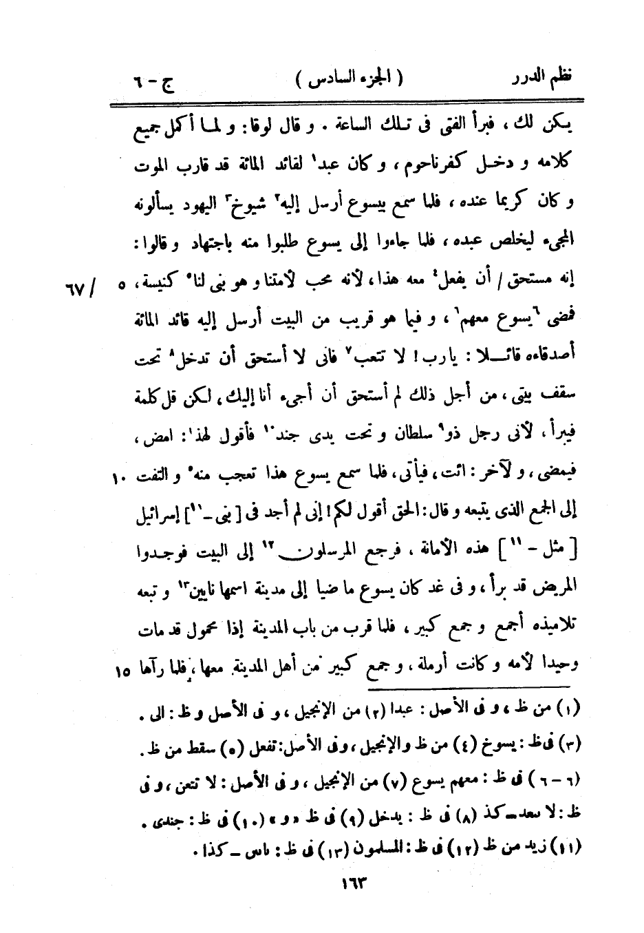 يكن لك، فبرأ الفتى في تلك الساعة، وقال لوقا: ولما أكمل جميع كلامه ودخل كفرناحوم، وكان عبد لقائد المائة قد قارب الموت وكان كريماً عنده، فلما سمع بيسوع أرسل إليه شيوخ اليهود يسألونه المجيء ليخلص عبده، فلما جاؤوا إلى يسوع طلبوا منه باجتهاد وقالوا: إنه مستحق أن يفعل معه هذا، لأنه محب لأمتنا وهو بنى لنا كنيسة، فمضى يسوع معهم، وفيما هو قريب من البيت أرسل إليه قائد المائة أصدقاءه قائلاً: يا رب! لا تتعب فإني لا أستحق أن تدخل تحت سقف بيتي، من أجل ذلك لم أستحق أن أجيء أنا إليك لكن قل كلمة فيبرأ لأني رجل ذو سلطان وتحت يدي جند فأقول لهذا: امض فيمضي ولآخر: ائت فيأتي فلما سمع يسوع هذا تعجب منه والتفت إلى الجمع الذي يتبعه وقال: الحق أقول لكم! إني لم أجد في بني إسرائيل مثل هذه الأمانة، فرجع المرسلون إلى اليبت فوجدوا المريض قد برأ، وفي غد كان يسوع ماضياً إلى مدينة اسمها نايين وتبعه تلاميذه أجمع وجمع كبير، فلما قرب من باب المدينة إذا محمول قد مات وحيداً لأمه وكانت أرملة، وجمع كبير من أهل المدينة معها، فلما رآها