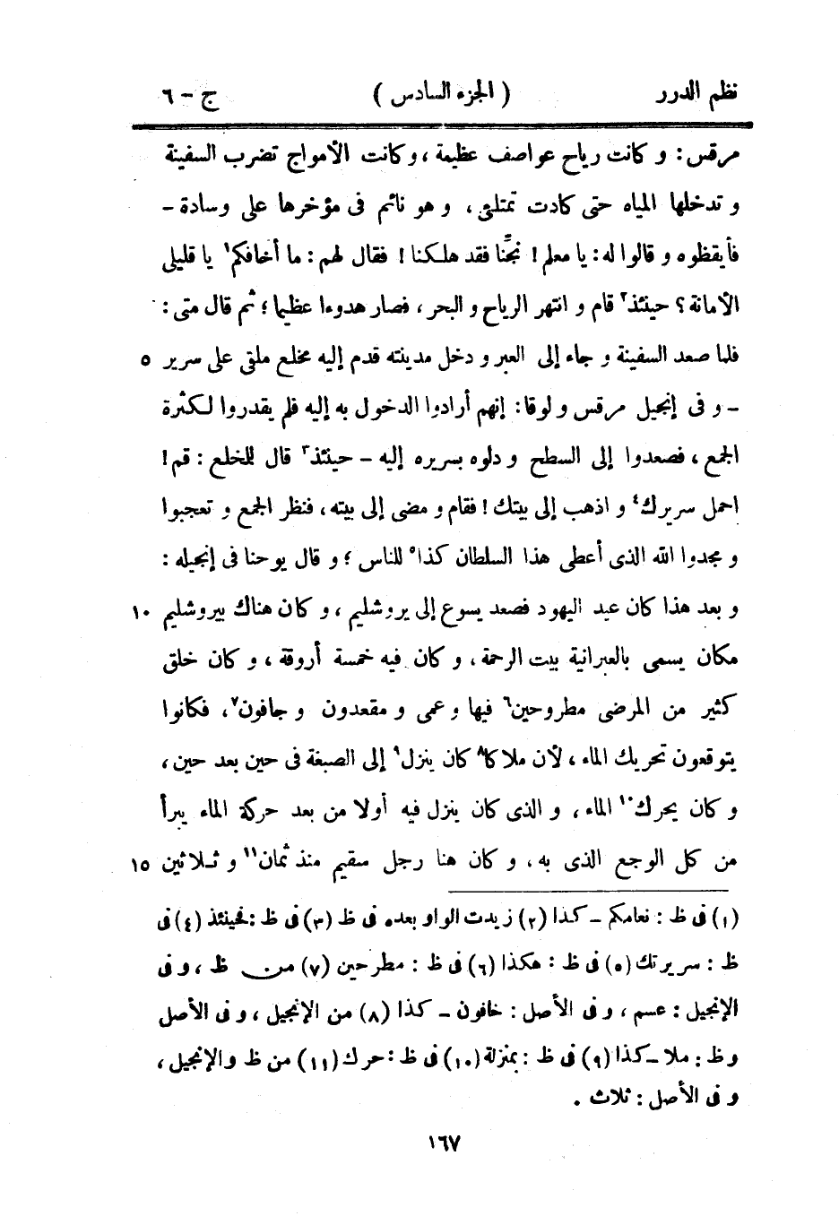 مرقس: وكانت رياح عواصف عظيمة، وكانت الأمواج تضرب السفينة وتدخلها المياه حتى كادت تمتلىء، وهو نائم في مؤخرها على وسادة - فأيقظوه وقالوا له: يا معلم! نجِّنا فقد هلكنا! فقال لهم: ما أخافكم يا قليلي الأمانة؟ حينئذ قام وانتهر الرياح والبحر، فصار هدوءاً عظيماً، ثم قال متى: فلما صعد السفينة وجاء إلى العبر ودخل مدينته قدم إليه مخلع ملقى على سرير - وفي إنجيل مرقس ولوقا: إنهم أرادوا الدخول به إليه فلم يقدروا لكثرة الجمع، فصعدوا إلى السطح ودلوه بسريره إليه - حينئذ قال للمخلع: قم! امل سريرك واذهب إلى بيتك! فقام ومضى إلى بيته، فنظر الجمع وتعجبوا ومجدوا الله الذي أعطى هذا السلطان كذا للناس؛ وقال يوحنا في إنجيله: وبعد هذا كان عيد اليهود فصعد يسوع إلى يروشليم، وكان هناك بيروشليم مكان يسمى بالعبرانية بيت الرحمة، وكان فيه خمسة أروقة، وكان خلق كثير من المرضى مطروحين فيها وعمي ومقعدون وجافون، فكانوا يتوقعون تحريك الماء، لأن ملاكاً كان ينزل إلى الصبغة في حين بعد حين، وكان يحرك الماء، والذي كان ينزل فيه أولاً من بعد حركة الماء يبرأ من كل الوجع الذي به، وكان هنا رجل سقيم منذ ثمان وثلاثين