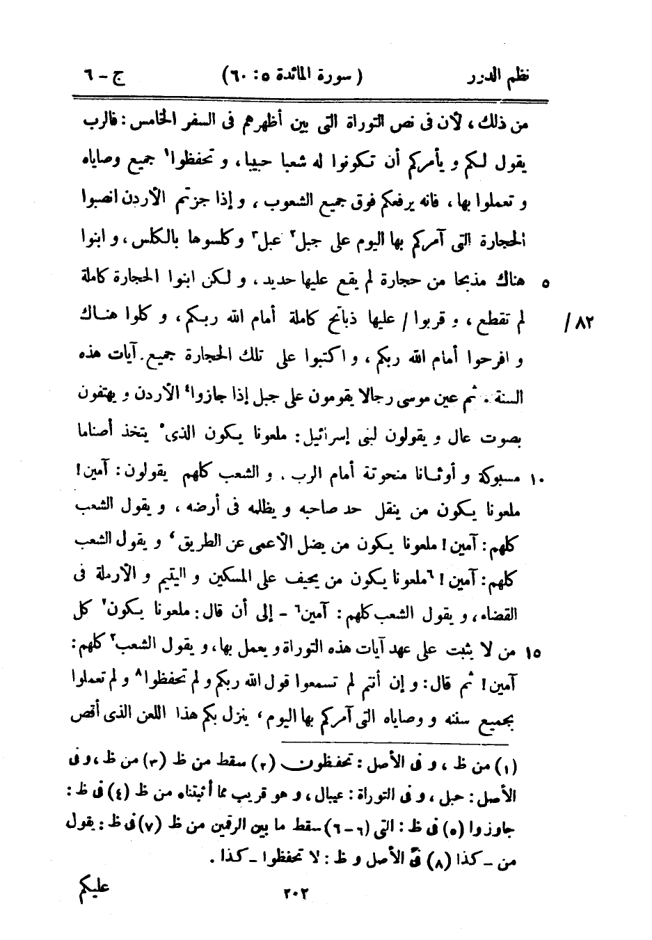 من ذلك، لأن في نص التوراة التي بين أظهرهم في السفر الخامس: فالرب يقول لكم ويأمركم أن تكونوا له شعباً حبيباً، وتحفظوا جميع وصاياه وتعملوا بها، فإنه يرفعكم فوق جميع الشعوب، وإذا جزتم الأردن انصبوا الحجارة التي آمركم بها اليوم على جبل عبل وكلسوها بالكلس، وابنوا هناك مذبحاً من الحجارة لم يقع عليها حديد، ولكن ابنوا الحجارة كاملة لم تقطع، وقربوا عليها ذبائح كاملة أمام الله ربكم، وكلوا هناك وافرحوا أمام الله ربكم، واكتبوا على تلك الحجارة جميع آيات هذه السنة.