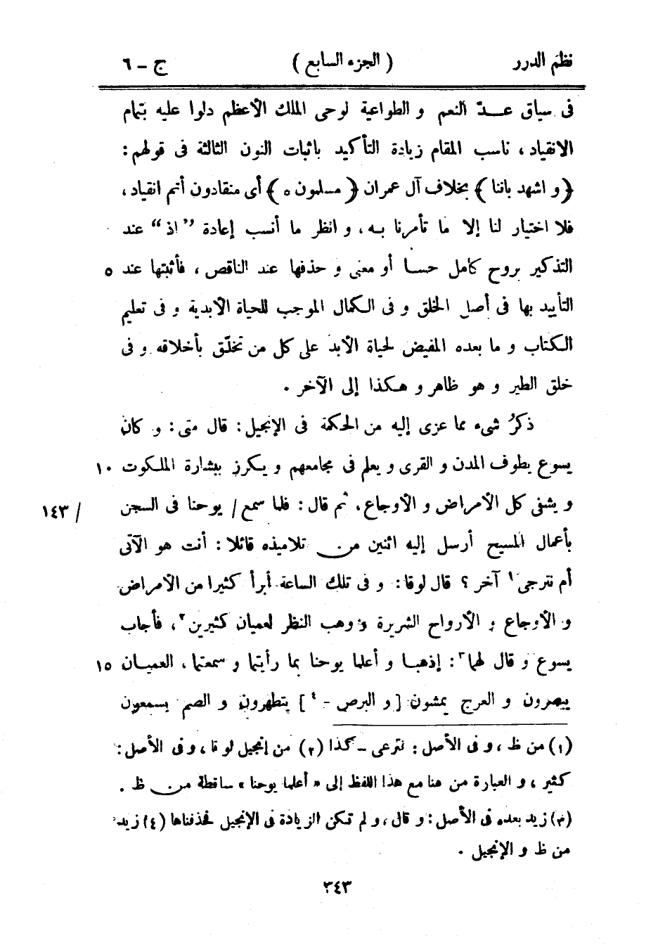 ذكرُ شيء مما عزي إليه من الحكمة في الإنجيل: قال متى: وكان يسوع يطوف المدن والقرى ويعلم في مجامعهم ويكرز ببشارة الملكوت ويشفي كل الأمراض والأوجاع، ثم قال: فلما سمع يوحنا في السجن بأعمال المسيح أرسل إليه اثنين من تلاميذه قائلاً: أنت هو الآتي أم نترجى آخر؟ قال لوقا: وفي تلك الساعة أبرأ كثيراً من الأمراض والأوجاع والأرواح الشريرة ووهب النظر لعميان كثيرين، فأجاب يسوع وقال لهما: اذهبا وأعلما يوحنا بما رأيتما وسمعتما، العميان يبصرون والعرج يمشون والبرص يتطهرون والصم يسمعون