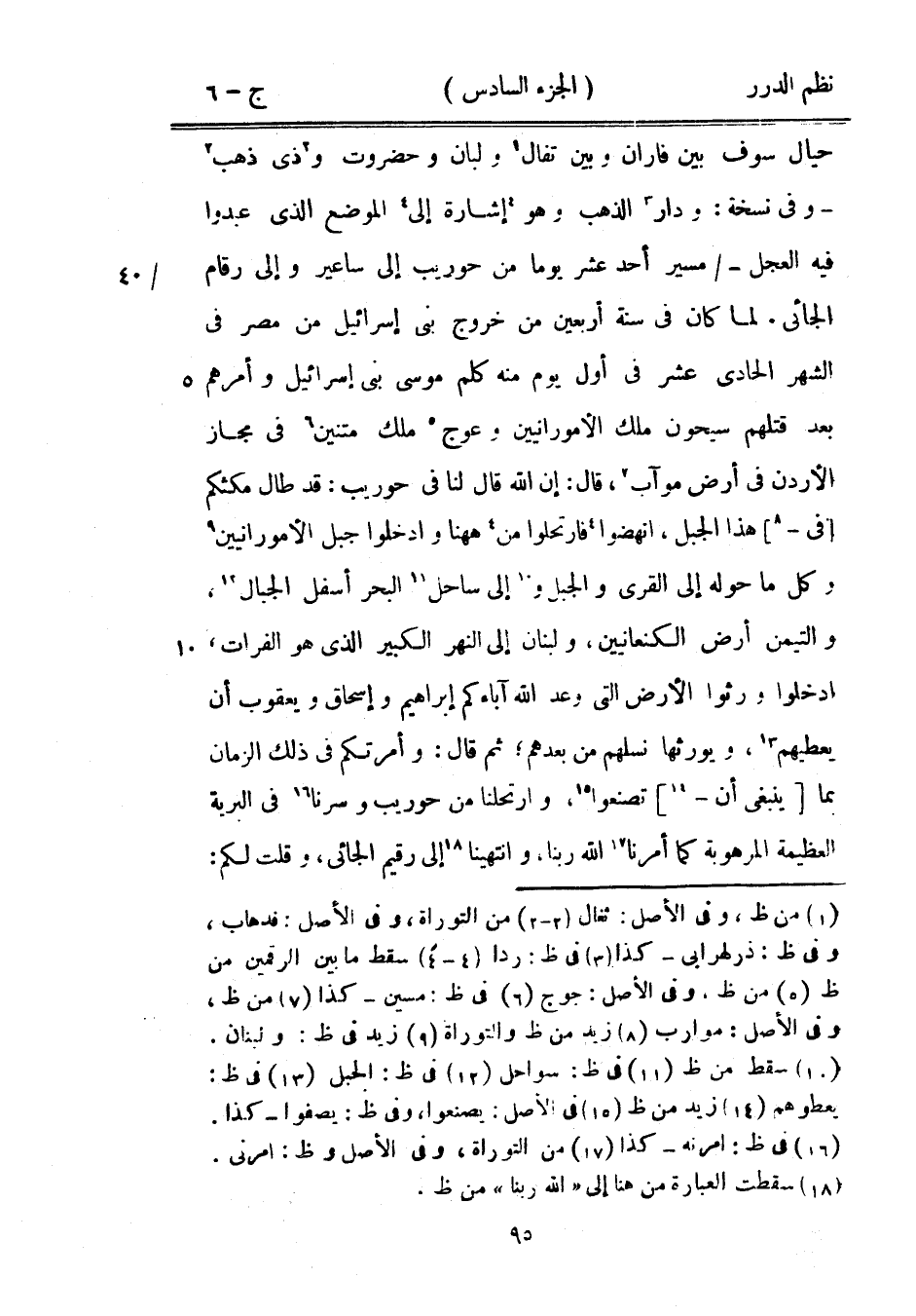 حيال سوف بين فاران وبين تفال ولبان وحضروت وذي ذهب - وفي نسخة: ودار الذهب وهو إشارة إلى الموضع الذي عبدوا فيه العجل - مسير أحد عشر يوماً من حوريب إلى ساعير وإلى رقام الجائي.