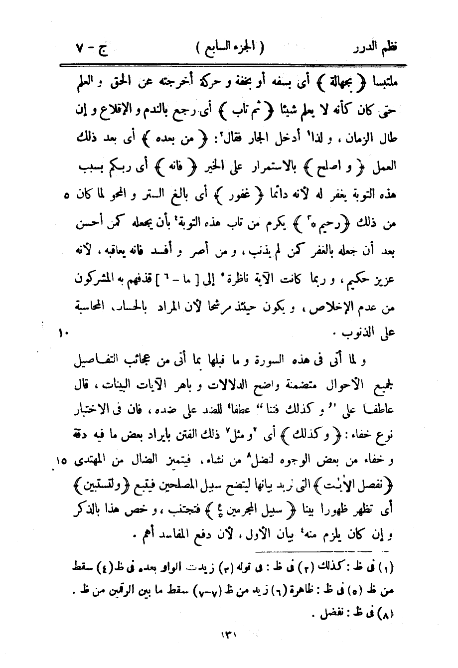كتاب نظم الدرر في تناسب الآيات والسور (اسم الجزء: 7)