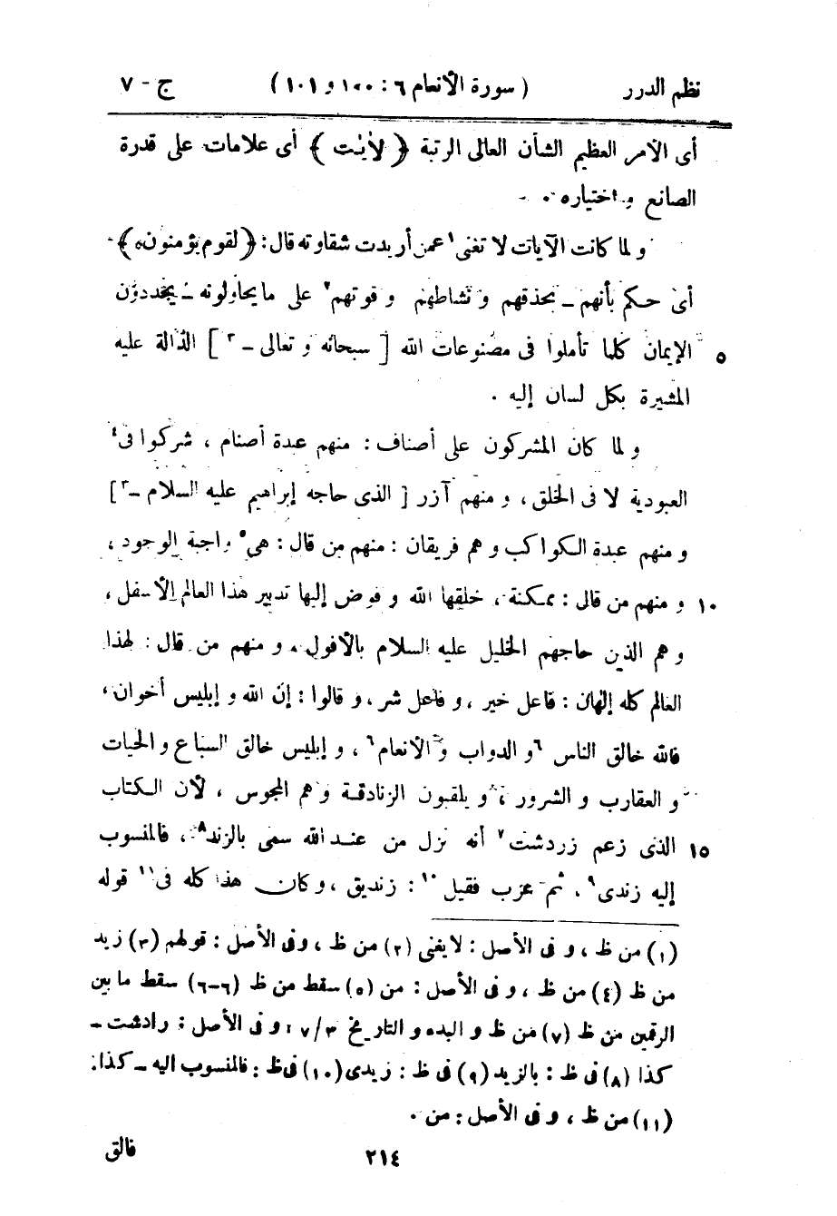 ولما كان المشركون على أصناف: منهم عدة أصنام، شركوا في العبودية لا في الخلق، ومنهم آزر الذي حاجه إبراهيم عليه السلام ومنهم عبدة الكواكب وهم فريقان: منهم من قال: هي واجبة الوجود، ومنهم من قال: ممكنة، خلقها الله وفوض إليها تدبير هذا العالم الأسفل، وهم الذين حاجهم الخليل عليه السلام بالأفول، ومنهم من قال: لهذا العالم كله إلهان: فاعل خير، وفاعل شر، وقالوا: إن الله وإبليس أخوان، فالله خالق الناس والدواب والأنعام، وإبليس خالق السباع والحيات والعقارب والشرور، ويلقبون الزنادقة وهم المجوس، لأن الكتاب الذي زعم زردشت أنه نزل من عند الله سمي بالزند، فالمنسوب إليه زندي، ثم عرب فقيل: زنديق، وكان هذا كله في قوله