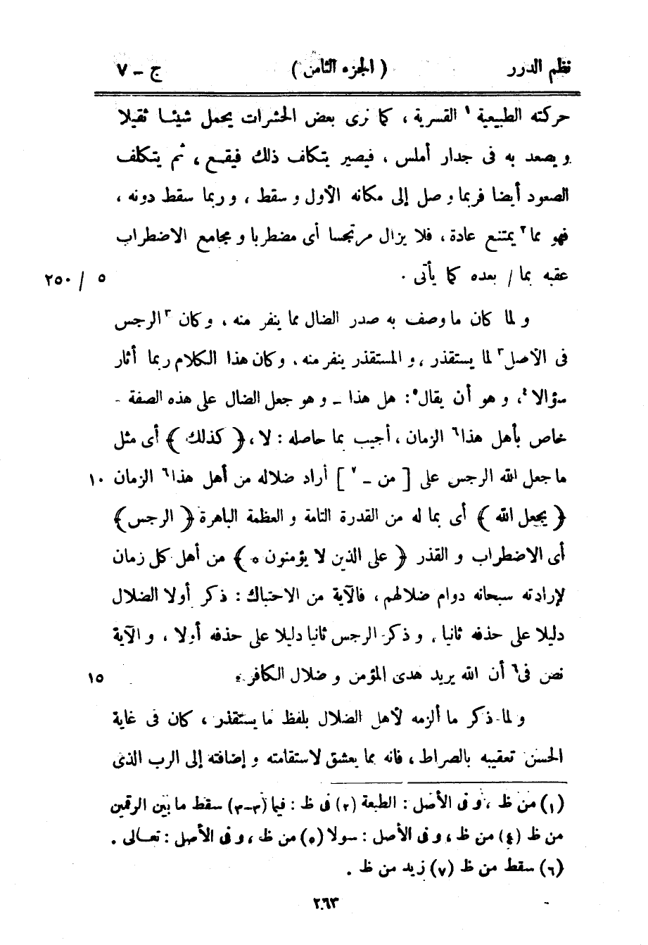 حركته الطبيعية القسرية، كما نرى بعض الحشرات يحمل شيئاً ثقيلاً ويصعد به في جدار أملس، فيصير يتكلف ذلك فيقع، ثم يتكلف الصعود ايضاً فربما وصل إلى مكانه الأول وسقط، وربما سقط دونه، فهو مما يمتنع عادة، فلا يزال مرتجساً أي مضطرباً ومجامع الاضطراب عقبه بما بعده كما يأتي.