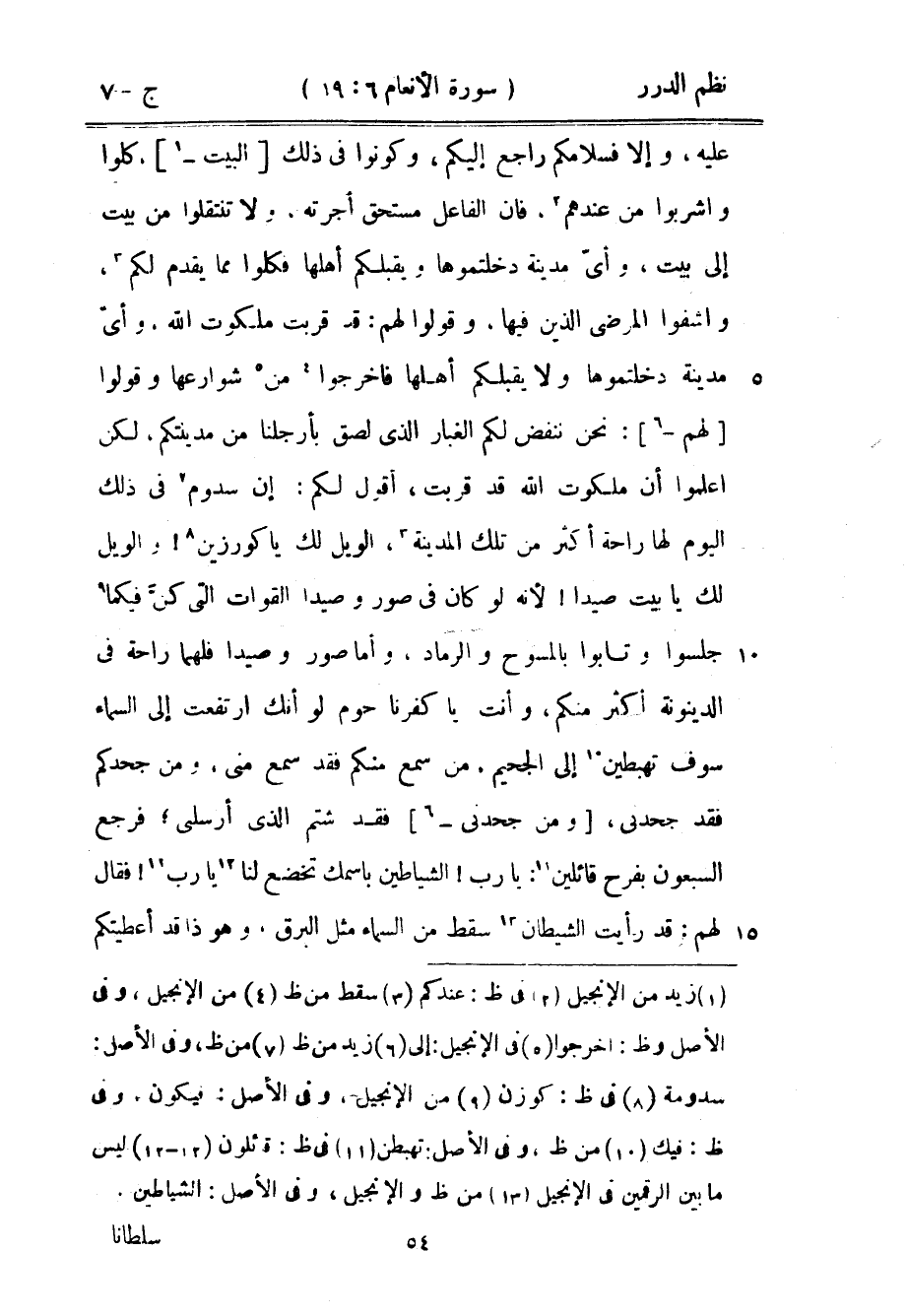 عليه، وإلا فسلامكم راجع إليكم، وكونوا في ذلك البيت، كلوا واشربوا من عندهم، فإن الفاعل مستحق أجرته، ولا تنتقلوا من بيت إلى بيت، وأي مدينة دخلتموها ويقبلكم أهلها فكلوا مما يقدم لكم، واشفوا المرضى الذين فيها، وقولوا لهم: قد قربت ملكوت الله، وأي مدينة دخلتموها ولا يقبلكم أهلها فاخرجوا من شوارعها وقولوا لهم: نحن ننفض لكم الغبار الذي لصق بأرجلنا من مدينتكم، لكن اعلموا أن ملكوت الله قد قربت، أقول لكم: إن سدوم في ذلك اليوم لها راحة أكثر من تلك المدينة، الويل لك يا كورزين! والويل لك يا بيت صيدا! لأنه لو كان في صور وصيدا القوات التي كنَّ فيكما جلسوا وتابوا بالمسوح والرماد، وأما صور وصيدا فلهما راحة في الدينونة أكثر منكم، وأنت يا كفرناحوم لو أنك ارتفعت إلى السماء سوف تهبطين إلى الجحيم، من سمع منكم فقد سمع مني، ومن جحدكم فقد جحدني، ومن جحدني فقد شتم الذي أرسلني؛ فرجع السبعون بفرح قائلين: يا رب! الشياطين باسمك تخضع لنا يا رب فقال لهم: قد رأيت الشيطان سقط من السماء مثل البرق، وهو ذا قد أعطيتكم