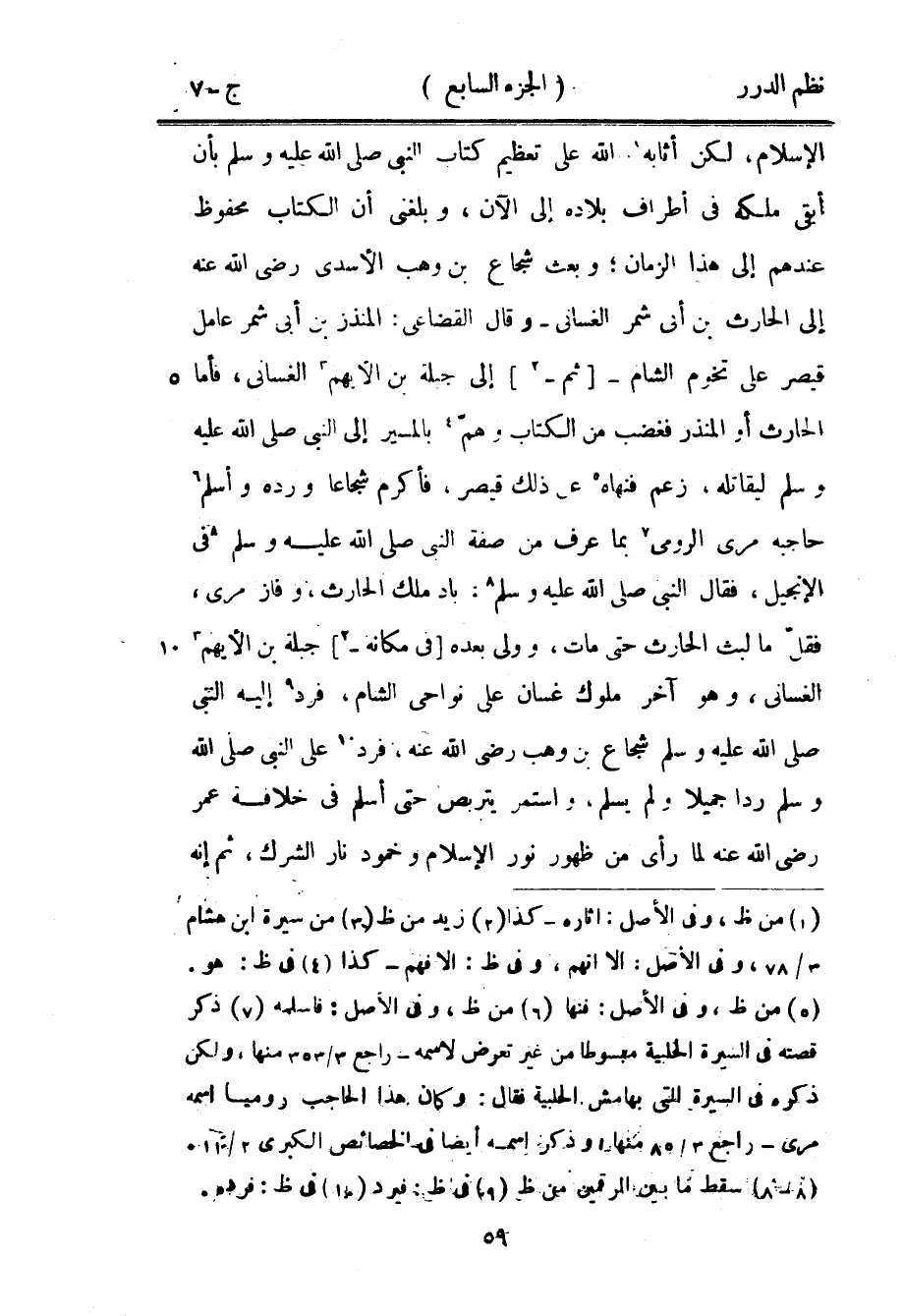 الإسلام، لكن أثابه الله على تعظيم كتاب النبي صَلَّى اللهُ عَلَيْهِ وَسَلَّمَ بأن أبقى ملكه في أطراف بلاده إلى الآن، وبلغني أن الكتاب محفوظ عندهم إلى هذا الزمان؛ وبعث شجاع بن وهب الأسدي رضي الله عنه إلى الحارث بن أبي شمر الغساني - وقال القضاعي: المنذر بن أبي شمر عامل قيصر على تخوم الشام - ثم إلى جبلة بن الأيهم الغساني، فأما الحارث أو المنذر فغضب من الكتاب وهمّ بالمسير إلى النبي صَلَّى اللهُ عَلَيْهِ وَسَلَّمَ ليقاتله، زعم فنهاه عن ذلك قيصر، فأكرم شجاعاً ورده وأسلم حاجبه مري الرومي بما عرف من صفة النبي صَلَّى اللهُ عَلَيْهِ وَسَلَّمَ في الإنجيل، فقال النبي صَلَّى اللهُ عَلَيْهِ وَسَلَّمَ «باد ملك الحارث، وفاز مري» فقلّ ما لبث الحارث حتى مات، وولي بعده في مكانه جبلة بن الأيهم الغساني، وهو آخر ملوك غسان على نواحي الشام، فرد إليه النبي صَلَّى اللهُ عَلَيْهِ وَسَلَّمَ شجاع بن وهب رضي الله عنه، فرد على النبي صَلَّى اللهُ عَلَيْهِ وَسَلَّمَ رداً جميلاً ولم يسلم، واستمر يتربص حتى أسلم في خلافة عمر رضي الله عنه لما رأى من ظهور نور الإسلام وخمود نار الشرك، ثم إنه