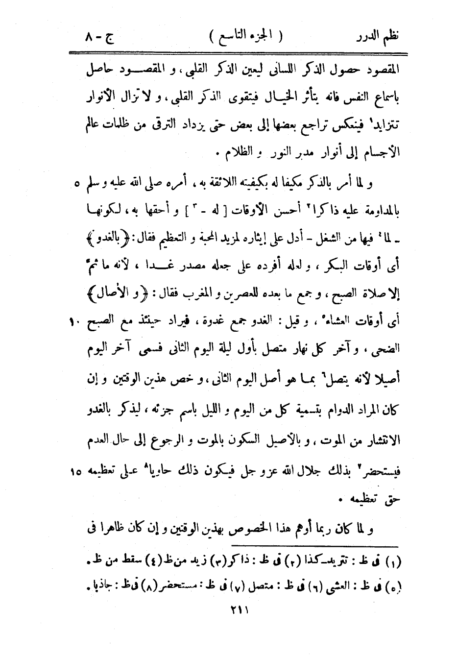 المقصود حصول الذكر اللساني ليعين الذكر القلبي، والمقصود حاصل بإسماع النفس فإنه يتأثر الخيال فيتقوى الذكر القلبي، ولا تزال الأنوار تتزايد فينعكس تراجع بعضها إلى بعض حتى يزداد الترقي من ظلمات عالم الأجسام إلى أنوار مدبر النور والظلام.