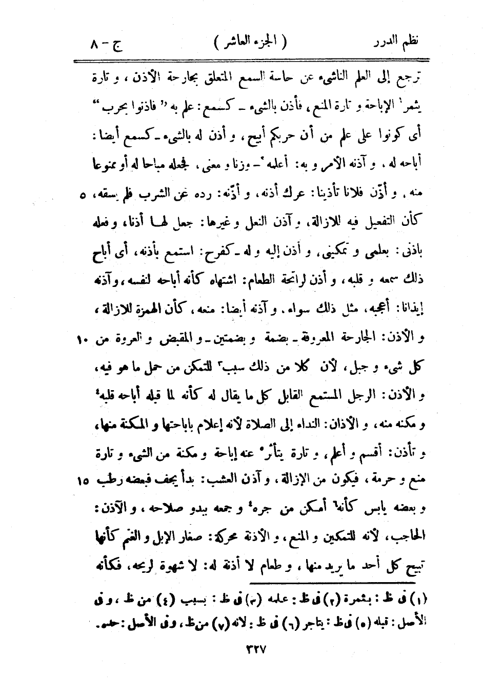 ترجع إلى العلم الناشىء عن حاسة السمع المتعلق بجارحة الأذن، وتارة يثمر الإباحة وتارة المنع، فأذن بالشيء - كسمع: علم به «فأذنوا بحرب» أي كونوا على علم من أن حربكم أبيح.