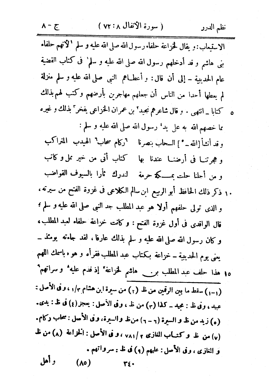 الاستيعاب؛ ويقال لخزاعة حلفاء رسول الله صَلَّى اللهُ عَلَيْهِ وَسَلَّمَ لأنهم حلفاء بني هاشم وقد أدخلهم رسول الله صَلَّى اللهُ عَلَيْهِ وَسَلَّمَ في كتاب القضية عام الحديبية - إلى أن قال: وأعطاهم النبي صَلَّى اللهُ عَلَيْهِ وَسَلَّمَ منزلة لم يعطها أحداً من الناس أن جعلهم مهاجرين بأرضهم وكتب لهم بذلك كتاباً - انتهى. وقال شاعرهم نجيد بن عمران الخزاعي يفخر بذلك وغيره مما خصهم الله به على يد رسول الله صَلَّى اللهُ عَلَيْهِ وَسَلَّمَ: