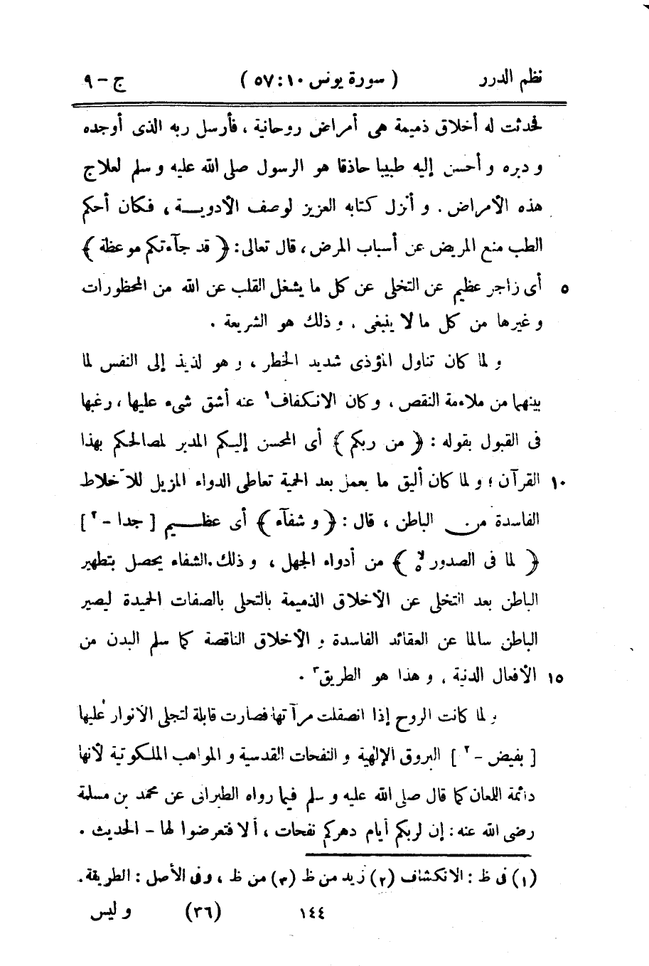 وأنزل كتابه العزيز لوصف الأدوية، فكان أحكم الطب منع المريض عن أسباب المرض، قال تعالى: {قد جاءتكم موعظة} أي زاجر عظيم عن التخلي عن كل ما يشغل القلب عن الله من المحظورات وغيرها من كل ما لا ينبغي، وذلك هو الشريعة.