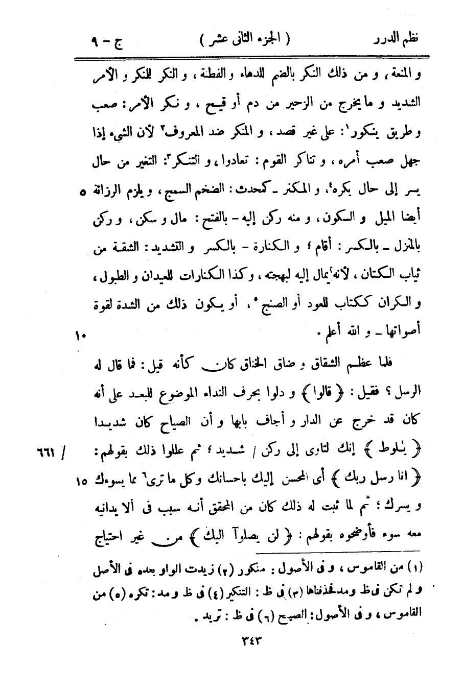 والمنعة، ومن ذلك النكر بالضم للدهاء والفطنة، والنكر للمنكر والأمر الشديد وما يخرج من الزحير من دم أو قيح، ونكر الأمر: صعب وطريق ينكور: على غير قصد، والمنكر ضد المعروف لأن الشيء إذا جهل صعب أمره، وتناكر القوم: تعادوا، والتنكر: التغير من حال يسر إلى حال يكره، والمكنر - كمحدث: الضخم السمج، ويلزم الرزانة أيضاً الميل والسكون، ومنه ركن إليه - بالفتح: مال وسكن، وركن بالمنزل - بالكسر: أقام؛ والكنارة - بالكسر والتشديد: الشقة من ثياب الكتان، لأنه يمال إليه لبهجته، وكذا الكنارات للعيدان والطبول، والكران ككتاب للعود أو الصنج، أو يكون ذلك من الشدة لقوة أصواتها - والله أعلم.