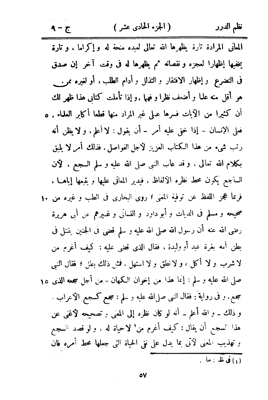 المعاني المراده تارة يظهرها الله تعالى لعبده منحة له وإكراماً، وتارة يخفيها إظهاراً لعجزه ونقصانه ثم يظهرها له في وقت آخر إن صدق في التضرع وإظهار الافتقار والتذلل وأدام الطلب، أو لغيره ممن هو أقل منه علماً وأضعف نظراً وفهماً، وإذا تأملت كتابي هذا ظهر لك أن كثيراً من الآيات فسرها على غير المراد منها قطعاً أكابر العلماء، فعلى الأنسان - إذا خفي عليه أمر - أن يقول: لا أعلم، ولا يظن أنه رتب شيء من هذا الكتاب العزيز لأجل الفواصل، فلذلك أمر لا يليق بكلام الله تعالى، وقد عاب النبي صَلَّى اللهُ عَلَيْهِ وَسَلَّمَ السجع، لأن الساجع يكونُ محطَ نظره الألفاظ، فيدير المعاني عليها ويتبعها إياها، فربما عجز اللفظ عن توفية المعنى؛ روى البخاري في الطب وغيره من صحيحه ومسلم في الديات وأبو داود والنسائي وغيرهم عن أبي هريرة رضي الله عنه