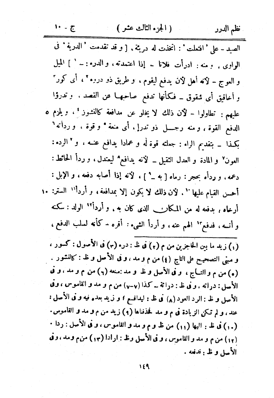 الصيد - على «افتعلت» : اتخذت له دريئة، وقد تقدمت «الدرية» في الواوي، ومنه: ادرأت فلاناً - ذا اعتمدته، والدرء: الميل والعوج - لأنه أهل لأن يدفع ليقوم، وطريق ذو دروء، أي كور وأخاقيق أي شقوق - فكأنها تدفع صاحبها عن القصد، وتدرؤوا عليهم: تطاولوا - لأن ذلك لا يخلو عن مدافعة كالنشوز، ويلزم الدفع القوة، ومنه رجل ذو تدرا، أي منعه وقوة، ورادته بكذا - بتقديم الراء: جعلته قوة له وعماداً يدافع عنه، والردء: العون والمادة والعدل الثقيل - لأنه يدافع ليعتدل، وردأ الحائط: دعمه، وردأه بحجر: رماه به، لأنه إذا أصابه دفعه، والإبل: أحسن القيام عليها، لأن ذلك لا يكون إلا بمدافعة، وأردأ الستر: أرخاه، بدفعه له من المكان الذي كان به، وأردأ الولد: سكنه وأنسه، فدفع الهم عنه، وأردأ الشيء: أقره - كأنه لسلب الدفع،