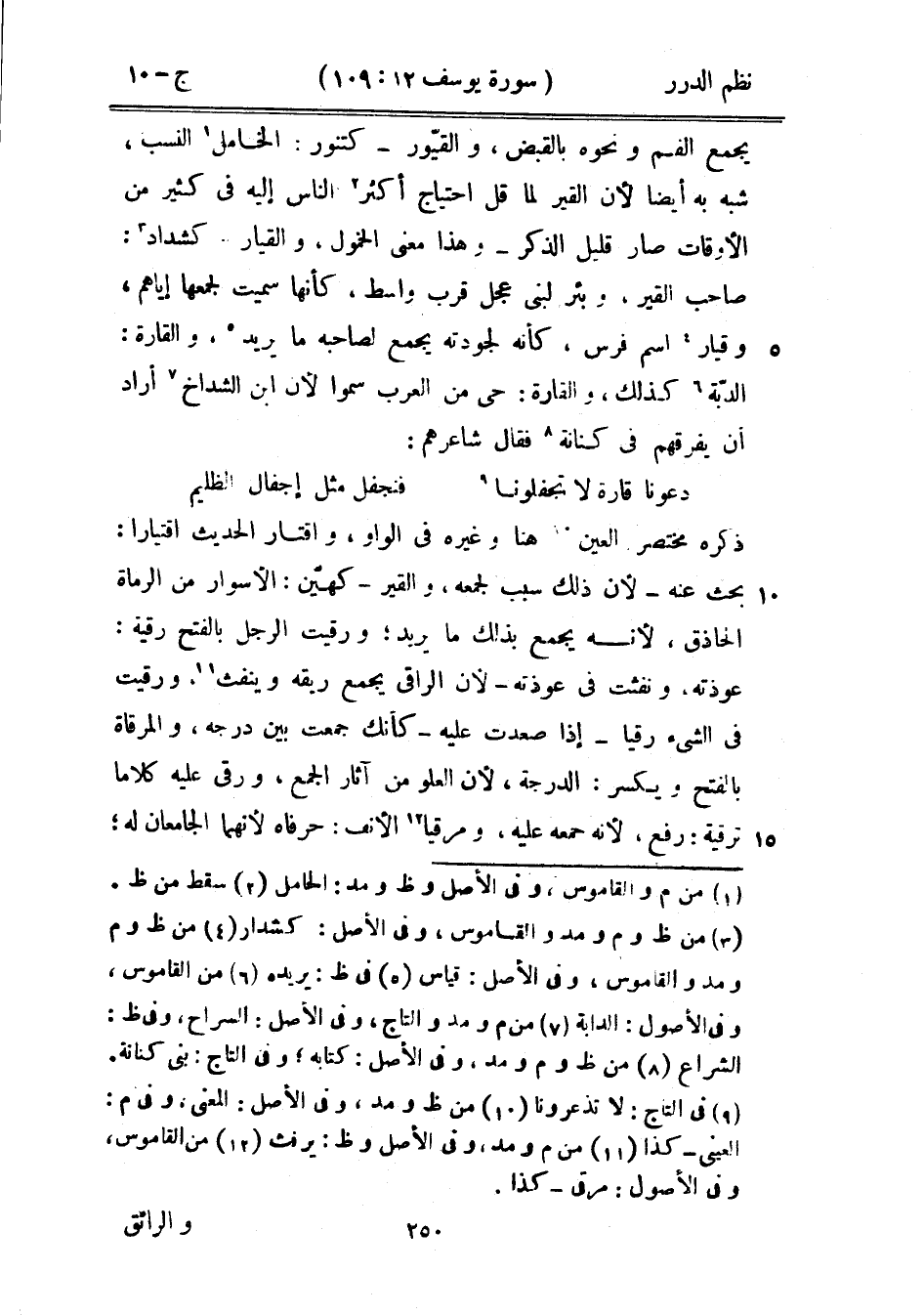 ذكره مختصر العين هنا وغيره في الواو، واقتار الحديث اقتياراً: بحث عنه - لأن ذلك سبب لجمعه، والقيِّر - كهيّن: الأسوار من الرماة الحاذق، لأنه يجمع بذلك ما يريد؛ ورقيت الرجل بالفتح رقية: عوذته، ونفثت في عوذته - لأن الراقي يجمع ريقه وينفث، ورقيت في الشيء رقياً - إذا صعدت عليه - كأنك جمعت بين درجه، والمرقاة بالفتح ويكسر: الدرجة، لأن العلو من آثار الجمع، ورقى عليه كلاماً ترقية: رفع، لأنه جمعه عليه، ومرقيا الأنف: حرفاه لأنهما الجامعان له؛
