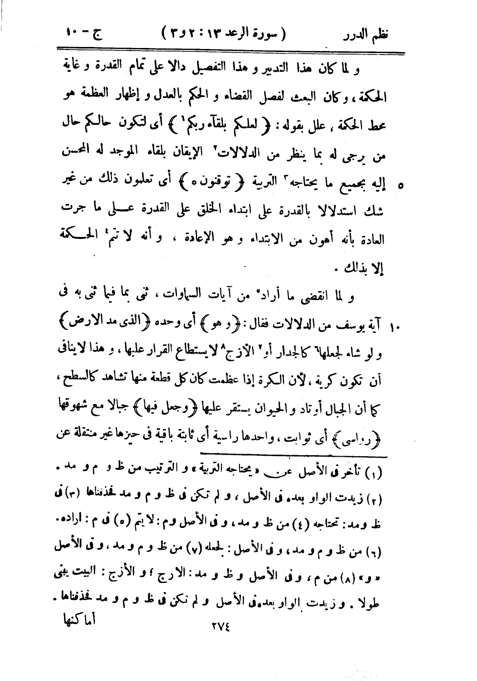 ولما كان التدبير وهذا التفصيل دالاًّ على تمام القدرة وغاية الحكمة، وكان البعث لفصل القضاء والحكم بالعدل وإظهار العظمة هو محط الحكمة، علل بقوله: {لعلكم بلقاء ربكم} أي لتكون حالكم حال من يرجى له بما ينظر من الدلالات الإيقان بلقاء الموجد له المحسن إليه بجميع ما يحتاجه التربية {توقنون *} أي تعلمون ذلك من غير شك استدلالاً بالقدرة على ابتداء الخلق على القدرة على ما جرت العادة بأنه أهون من الابتداء وهو الإعادة، وأنه لا تتم الحكمة إلا بذلك.