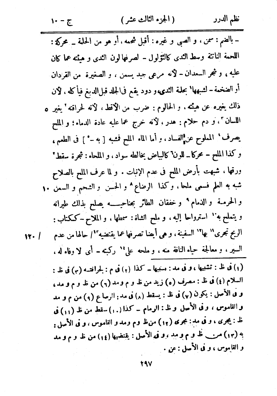 بالضم: سمن، والصبي وغيره: أقبل شحمه، أو هو من الحلمة - محركة: اللحمة الناتئة وسط الثدي كالثؤلول - لصرفها لون الثدي وهيئته عما كان عليه، وشجر السعدان - لأنه مرعى جيد يسمن، والصغيرة من القردان أو الضخمة - لشبهها بحلمة الثدي ودود يقع في الجلد قبل الدبغ فيأكله، لأن ذلك يغيره عن هيئته، والحالوم: ضرب من الأقط، لأنه لحراقته يغير اللسان، ودم حلام: هدر، لأنه خرج عما عليه عادة الدماء؛ والملح يصرف المملوح عن الفساد، وأما الماء الملح فمشبه به الطعم، وكذا الملح - محركاً - للون كالبياض يخالطه سواد، والملحاء: شجرة سقط ورقها، شبهت بأرض الملح في عدم الإنبات. ولما عرف الملح بالصلاح شبه به العلم فسمي ملحاً، وكذا الرضاع والحسن والشحم والسمن والحرمة والذمام وخفقان الطائر بجناحيه يصلح بذلك طيرانه ويتملح به استرواحاً إليه، وملح الشاة: سمطها، والملاح - ككتاب: الريح تجري بها السفينة، وهي أيضاً تصرفها عما يقتضيه حالها من عدم السير، ومعالجة حياء الناقة منه، وملحه على ركبته - أي لا وفاء له،