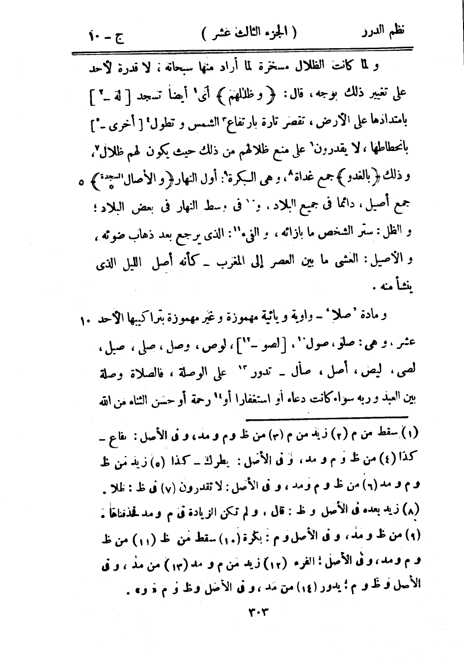 ولما كانت الظلال مسخرة لما أراد سبحانه، لا قدرة لأحد على تغيير ذلك بوجه، قال: {وضلالهم} أي أيضاً تسجد له بامتدادها على الأرض، تقصر تارة بارتفاع الشمس وتطول أخرى بانحطاطها، لا يقدرون على منع ظلالهم من ذلك حيث يكون لهم ظلال، وذلك {بالغدو} جمع غداة، وهي البكرة: أول النهار {والآصال *} جمع أصيل، دائماً في جميع البلاد، وفي وسط النهار في بعض البلاد؛ والظل: ستر الشخص ما بإزائه، والفيء: الذي يرجع بعد ذهاب ضوئه، والأصيل: العشيّ ما بين العصر إلى المغرب - كأنه أصل الليل الذي ينشأ منه.