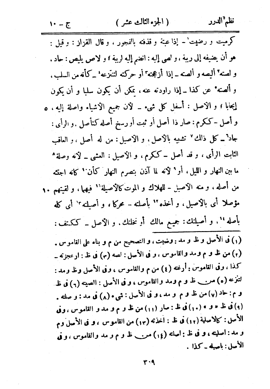 كرميت ورضيت - إذا عبته وقذفته بالفجور، وقال القزاز: وقيل: هو أن يضيفه إلى ربية، ولصي إليه: انضم إليه لريبة؛ ولاص يليص: حاد، ولصته أليصه وألصته - إذا أزعجته أو حركته لتنتزعه - كأنه من السلب، وألصته عن كذا - إذا راودته عنه، يمكن أن يكون سلباً وأن يكون إيجاباً؛ والأصل: أسفل كل شيء - لأن جميع الأشياء واصله إليه، وأصل - ككرم: صار ذا أصل أو ثبت أو رسخ كتأصل، والرأي: جاد - كل ذلك تشبيه بالأصل، والأصيل: من له أصل، والعاقب الثابت الرأي، وقد أصل - ككرم، والأصيل: العشيّ - لأنه وصلة ما بين النهار والليل، أو الليل، أو لأنه لما آذن بتصرم النهار كان كأنه اجتثه من أصله، ومنه الأصيل - للهلاك والموت كالأصيلة فيهما، ولقيتهم مؤصلاً أي بالأصيل، وأخذه بأصلته - محركاً، وأصيلته أي كله بأصله، وأصيلتك: جميع مالك أو نخلتك، والأصل - ككتف: