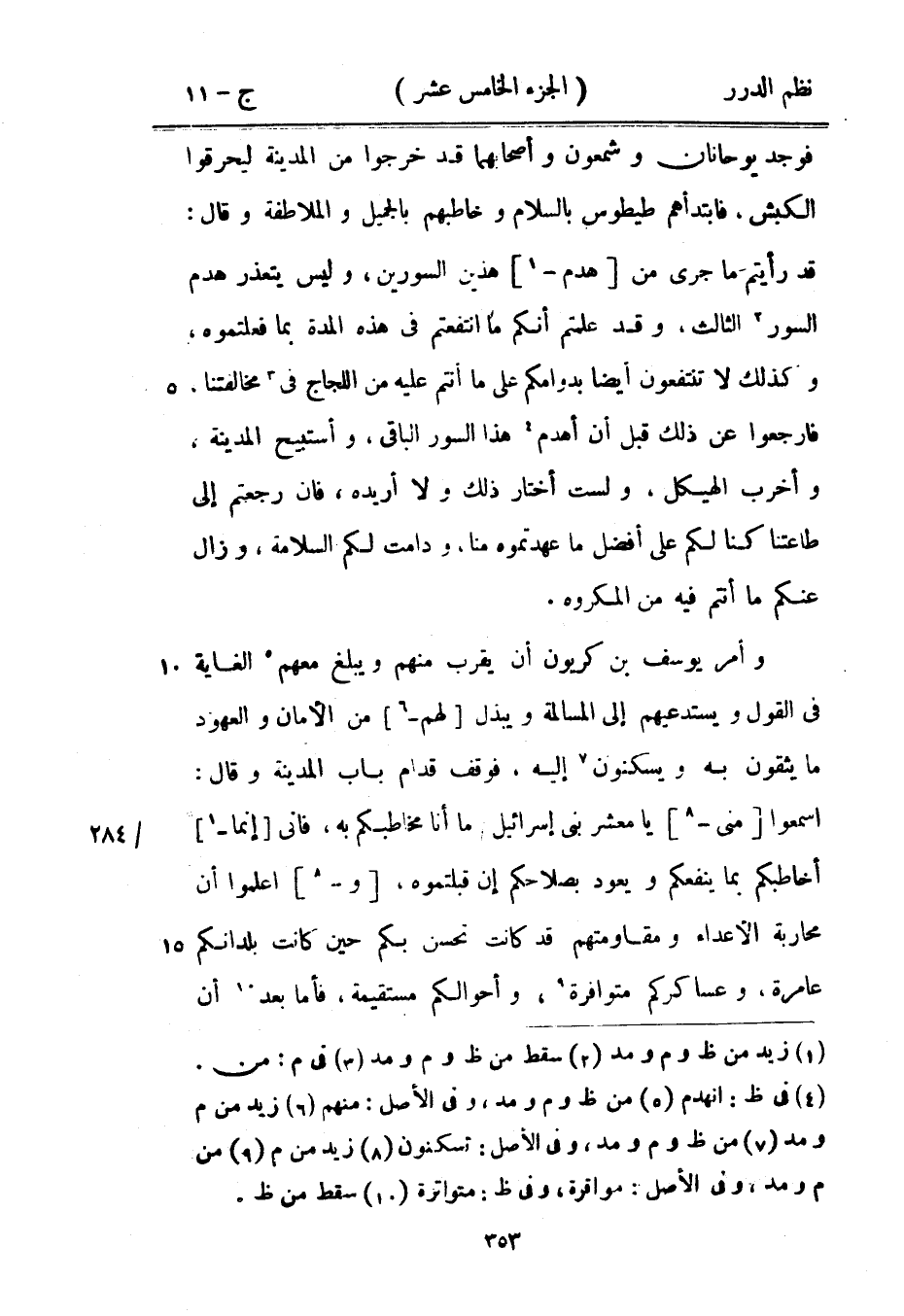 وأمر يوسف بن كريون أن يقرب منهم ويبلغ معهم الغاية في القول ويستدعيهم إلى المسالمة ويبذل لهم من الأمان والعهود ما يثقون به ويسكنون إليه، فوقف قدام باب المدينة وقال: اسمعوا مني يا معشر بني إسرائيل ما أنا مخاطبكم به، فإني إنما أخاطبكم يما ينفعكم ويعود بصلاحكم إن قبلتموه، واعلموا أن محاربة الأعداء ومقاومتهم قد كانت تحسن بكم حين كانت بلدانكم عامرة، وعساكركم متوافرة، وأحوالكم مستقيمة، فأما بعد أن