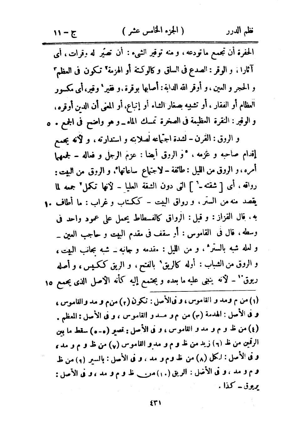 الحفرة أن تجمع ما تودعه، ومنه توقير الشيء: أن تصير له وقرات، أي آثاراً، والوقر: الصدع في الساق وكالوكتة أو الهزمة تكون في العظم والحجر والعين، وأوقر الله الدابة: أصابها بوقرة، وفقير وقير، أي مكسور العظام أو الفقار، أو تشبيه بصغار الشاء أو اتباع، أو المعنى أن الدين أوقره، والوقير: النقرة العظيمة في الصخرة تمسك الماء - وهو واضح في الجمع.