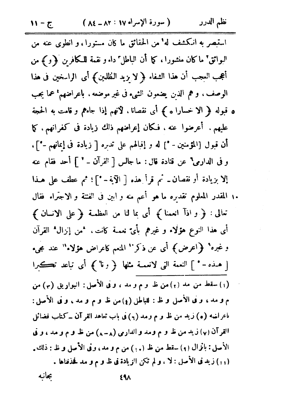 كتاب نظم الدرر في تناسب الآيات والسور (اسم الجزء: 11)