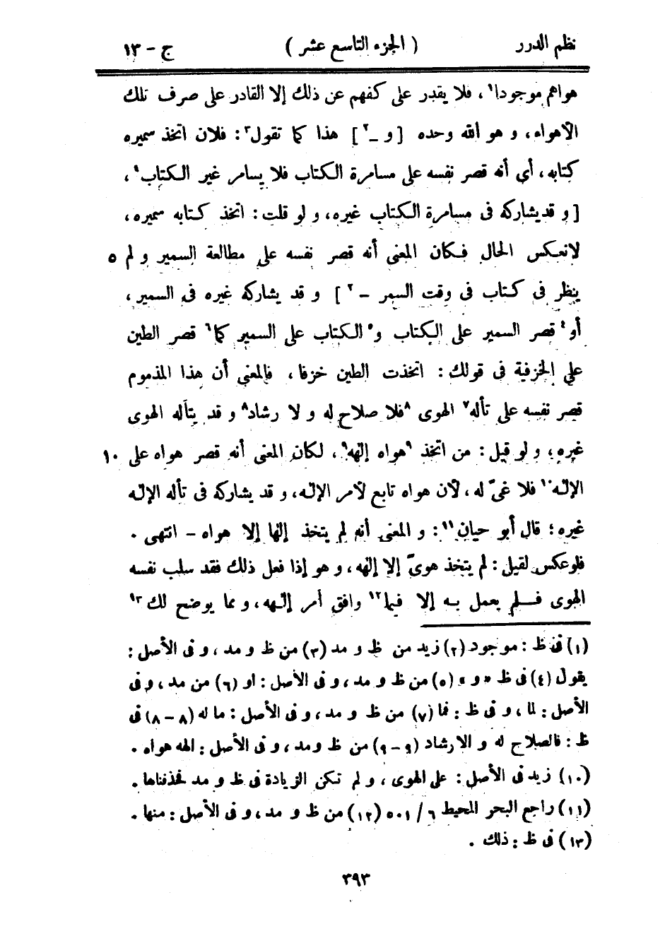 هواهم موجوداً، فلا يقدر على كفهم عن ذلك إلا القادر على صرف تلك الأهواء، وهو الله وحده وهذا كما تقول: فلان اتخذ سميره كتابه، أي أنه قصر نفسه على مسامرة الكتاب فلا يسامر غير الكتاب، وقد يشاركه في مسامرة الكتاب غيره، ولو قلت: اتخذ كتابه سميره، لانعكس الحال فكان المعنى أنه أنه قصر نفسه على مطالعة السمير ولم ينظر في كتاب في وقت السمر وقد يشاركه غيره في السمير، أو قصر السمير على الكتاب والكتاب على السمير كما قصر الطين على الخزفية في قولك: اتخذت الطين خزفاً، فالمعنى أن هذا المذموم قصر نفسه على تأله الهوى فلا صلاح له ولا رشاد وقد يتأله الهوى غيره، ولو قيل: من اتخذ هواه إلهه، لكان المعنى أنه قصر هواه على الإله فلا غيّ له، لأن هواه تابع لأمر الإله، وقد يشاركه في تأله الإله غيره؛ قال أبو حيان: والمعنى أنه لم يتخذ إلهاً إلا هواه - انتهى.