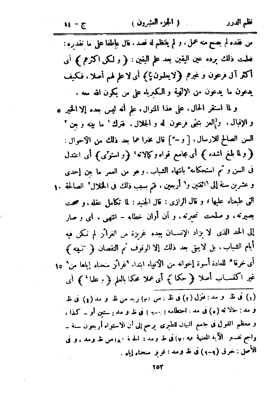 ولما استقر الحال، على هذا المنوال، علم أنه ليس بعده إلا الخير والإقبال، والعز بتبني فرعون له والجلال، فترك ما بينه وبين السن الصالح للإرسال، وقال مخبراً عما بعد ذلك من الأحوال: {ولما بلغ أشده} أي مجامع قواه وكمالاته {واستوى} أي اعتدل في السن وتم استحكامه بانتهاء الشباب، وهو من العمر ما بين إحدى وعشرين سنة إلى اثنتين وأربعين، فتم بسبب ذلك في الخلال الصالحة التي طبعناه عليها؛ وقال الرازي: قال الجنيد: لما تكامل عقله، وصحت بصيرته، وصلحت نحيرته، وآن أوان خطابه - أنتهى. أي وصار إلى الحد الذي لا يزاد الإنسان بعده غريزة من الغرائز لم تكن فيه أيام الشباب، بل لا يبقى بعد ذلك إلا الوقوف ثم النقصان {آتيناه} أي خرقاً للعادة أسوة إخوانه من الأنبياء ابتداء غرائز منحناه إياها من غير اكتساب أصلاً {حكماً} أي عملاً محكماً بالعلم {وعلماً} أي