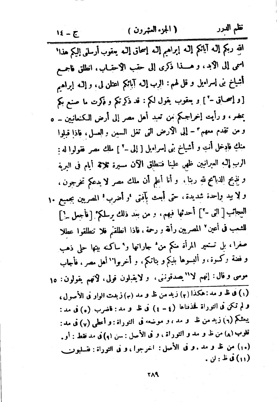 الله ربكم إله آبائكم إله إبراهيم إله إسحاق إله يعقوب أرسلني إليكم هذا اسمي إلى الأبد، وهذا ذكري إلى حقب الأحقاب، انطلق فاجمع أشياخ بني إسرائيل وقل لهم: الرب إله آبائكم اعتلن لي، وإله إبراهيم وإسحاق ويعقوب يقول لكم: قد ذكرتكم وذكرت ما صنع بكم بمصر، ورأيت إخراجكم من تعبد أهل مصر إلى ارض الكنعانيين - ومن تقدم معهم - إلى الأرض التي تعل السمن والعسل، فإذا قبلوا منك فادخل أنت وأشياخ بني إسرائيل إلى ملك مصر فقولوا له: الرب إله العبرانيين ظهر علينا فننطلق الآن مسيرة ثلاثة أيام في البرية ونذبح الذبائح لله ربنا، وأنا أعلم أن ملك مصر لا يدعكم تخرجون، ولا بيد واحدة شديدة، حتى أبعث بآفتي وأضرب المصريين بجميع العجائب التي أحدثها فيهم، ومن بعد ذلك يرسلكم فأجعل للشعب في أعين المصريين رأفة ورحمة، فإذا انطلقتم فلا تنطلقوا عطلاً صفراً، بل تستعير المرأة منكم من جاراتها وساكنة بيتها حلي ذهب وفضة وكسوة، وألبسوها بنيكم وبناتكم، وأخربوا أهل مصر، فأجاب موسى وقال: إنهم لا يصدقونني، ولا يقبلون قولي، لأنه يقولون: