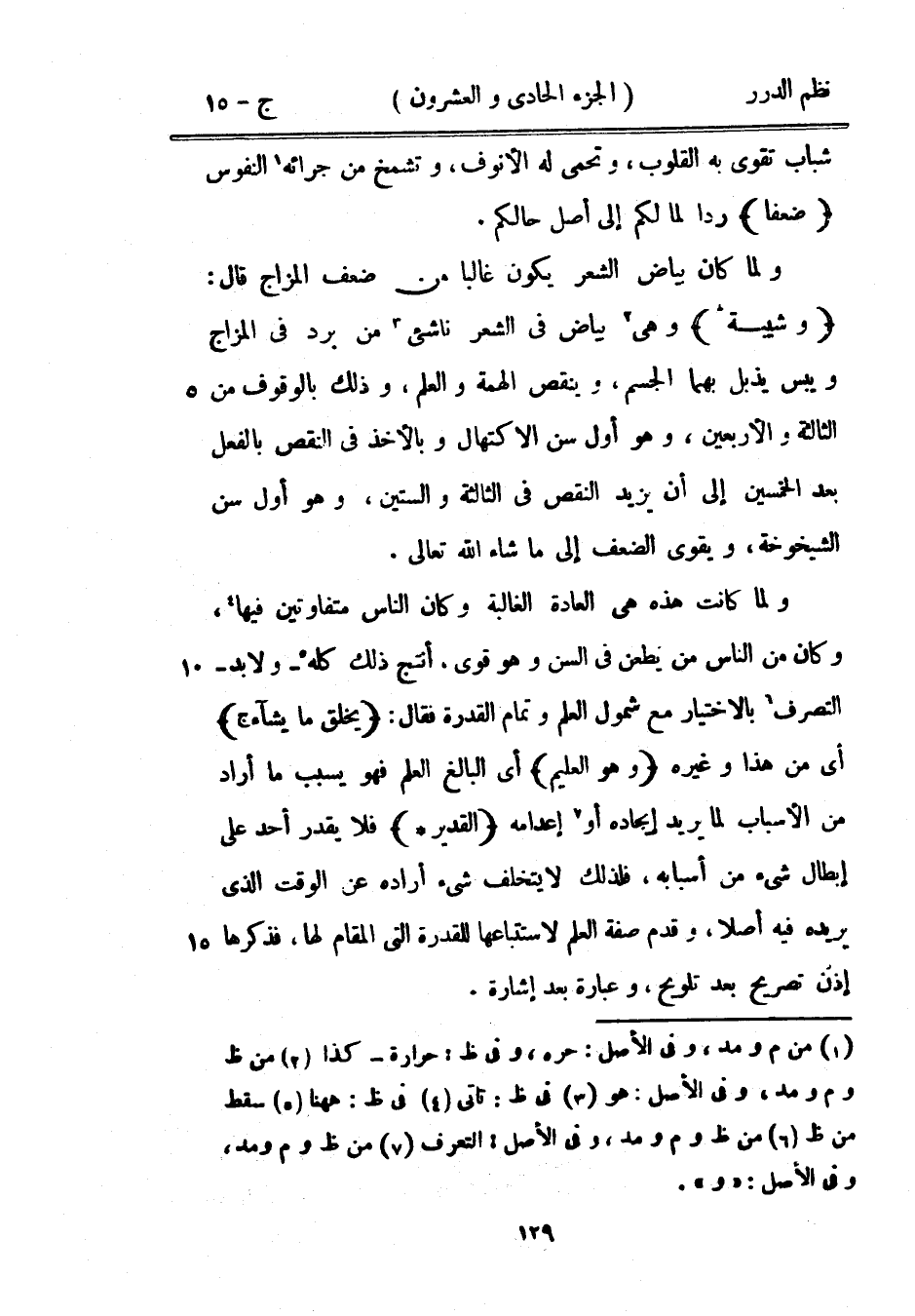 ولما كان بياض الشعر يكون غالباً من ضعف المزاج قال: {وشيبة} وهي بياض في الشعر ناشىء من برد في المزاج ويبس يذبل بهما الجسم، وينقص الهمة والعلم، وذلك بالوقوف من الثالثة والأربعين، وهو أول سن الاكتهال وبالأخذ في النقص بالفعل بعد الخمسين إلى أن يزيد النقص في الثالثة والستين، وهو أول سن الشيخوخة، ويقوى الضعف إلى ما شاء الله تعالى.