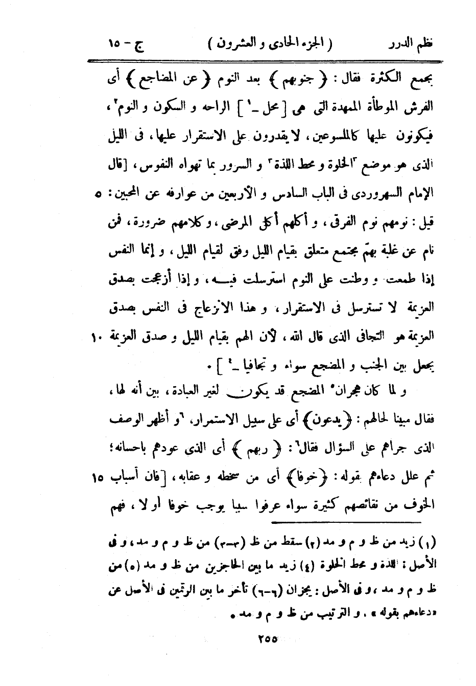 بجمع الكثرة فقال: {جنوبهم} بعد النوم {عن المضاجع} أي الفرش الموطأة الممهدة التي هي محل الراحة والسكون والنوم، فيكونون عليها كالملسوعين، لا يقدرون على الاستقرار عليها، في الليل الذي هو موضع الخلوة ومحط اللذة والسرور بما تهواه النفوس، قال الإمام السهروردي في الباب السادس والأربعين من عوارفه عن المحبين: قيل: نومهم نوم الفرقى، وأكلهم أكل المرضى، وكلامهم ضرورة، فمن نام عن غلبة بهمّ مجتمع متعلق بقيام الليل وفق لقيام الليل، وإنما النفس إذا طعمت ووطنت على النوم استرسلت فيه، وإذا أزعجت بصدق العزيمة لا تسترسل في الاستقرار، وهذا الانزعاج في النفس بصدق العزيمة هو التجافي الذي قال الله، لأن الهم بقيام الليل وصدق العزيمة يجعل بين الجنس والمضجع سواء وتجافياً.