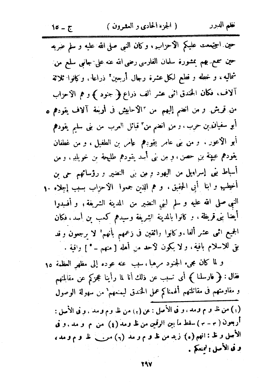 حين اجتمعت عليكم الأحزاب وكان النبي صَلَّى اللهُ عَلَيْهِ وَسَلَّمَ ضربه حين سمع بهم بمشورة سلمان الفارسي رضي الله عنه على جانبي سلع من شماليه، وخطه وقطع لكل عشرة رجال أربعين ذراعاً، وكانوا ثلاثة آلاف، فكان الخندق اثني عشر ألف ذراع {جنود} وهم الأحزاب من قريش ومن انضم إليه من الأحابيش في أربعة آلاف يقودهم أبو سفيان ابن حرب، ومن انضم من قبائل العرب من بني سليم يقودهم أبو الأعور، ومن بني عامر يقودهم عامر بن الطفيل، ومن غطفان يقودهم عيينة بن حصن، ومن بني أسد يقودهم طليحة بن خويلد، ومن أسباط بني إسرائيل من اليهود ومن بني النضير ورؤساهم حيي بن أخطب وابنا أبي الحقيق، وهم الذين جمعوا الأحزاب بسبب إجلاء النبي صَلَّى اللهُ عَلَيْهِ وَسَلَّمَ لبني النضير من المدينة الشريفة، وأفسدوا أيضاً بني قريظة، وكانوا بالمدينة الشريفة وسيدهم كعب بن أسد، فكان الجميع اثني عشر الفاً، وكانوا واثقين في زعمهم بأنهم لا يرجعون وقد بقي للإسلام باقية، ولا يكون لأحد من أهله منهم واقية.