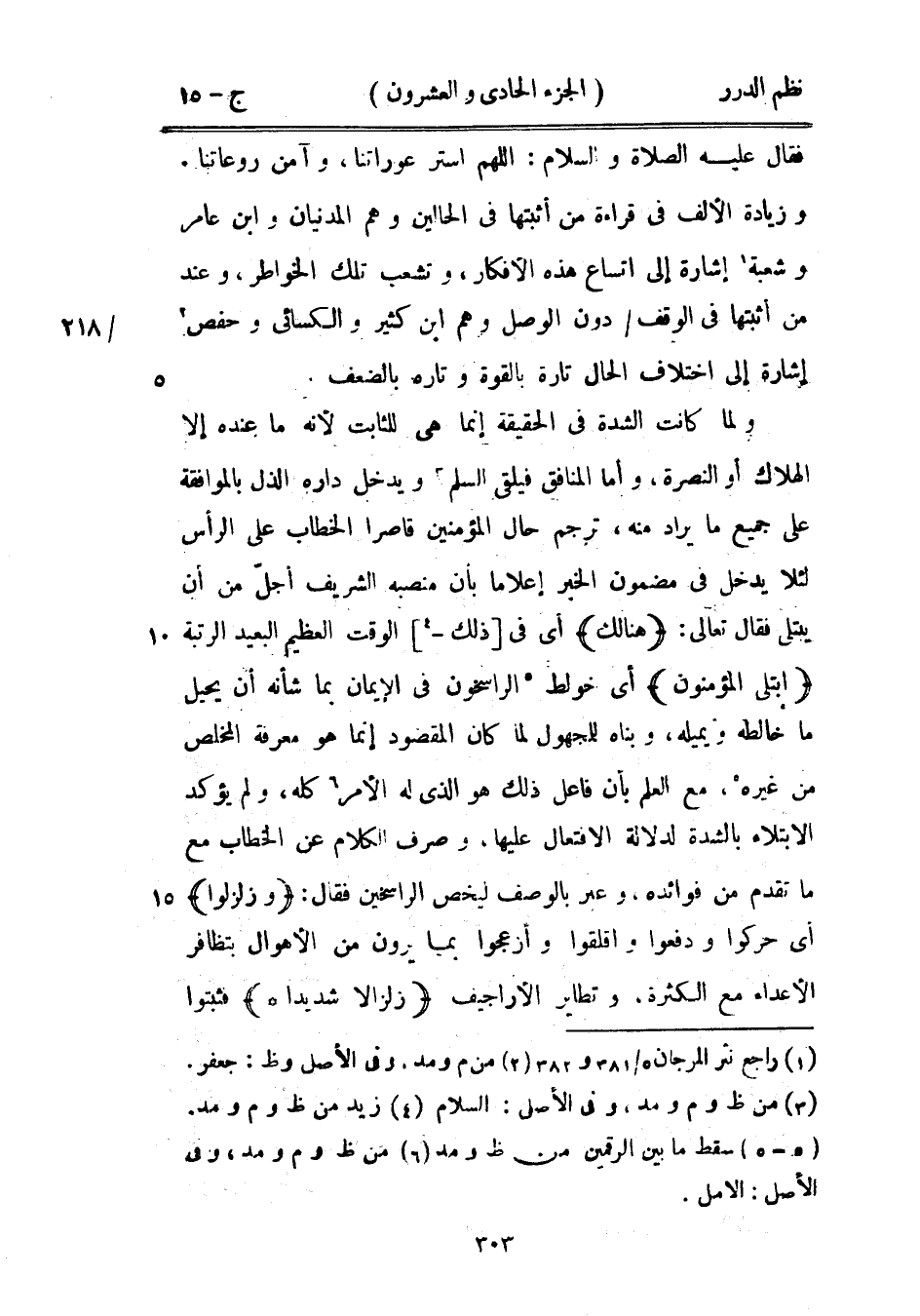 «اللهم استر عوراتنا، وآمن روعاتنا» وزيادة الألف في قراءة من أثبتها في الحالين وهم المدنيان وابن عامر وشعبة إشارة إلى اتساع هذه الأفكار، وتشعب تلك الخواطر، وعند من أثبتها في الوقت دون الوصل وهم ابن كثير والكسائي وحفص إشارة إلى اختلاف الحال تارة بالقوة وتارة بالضعف.