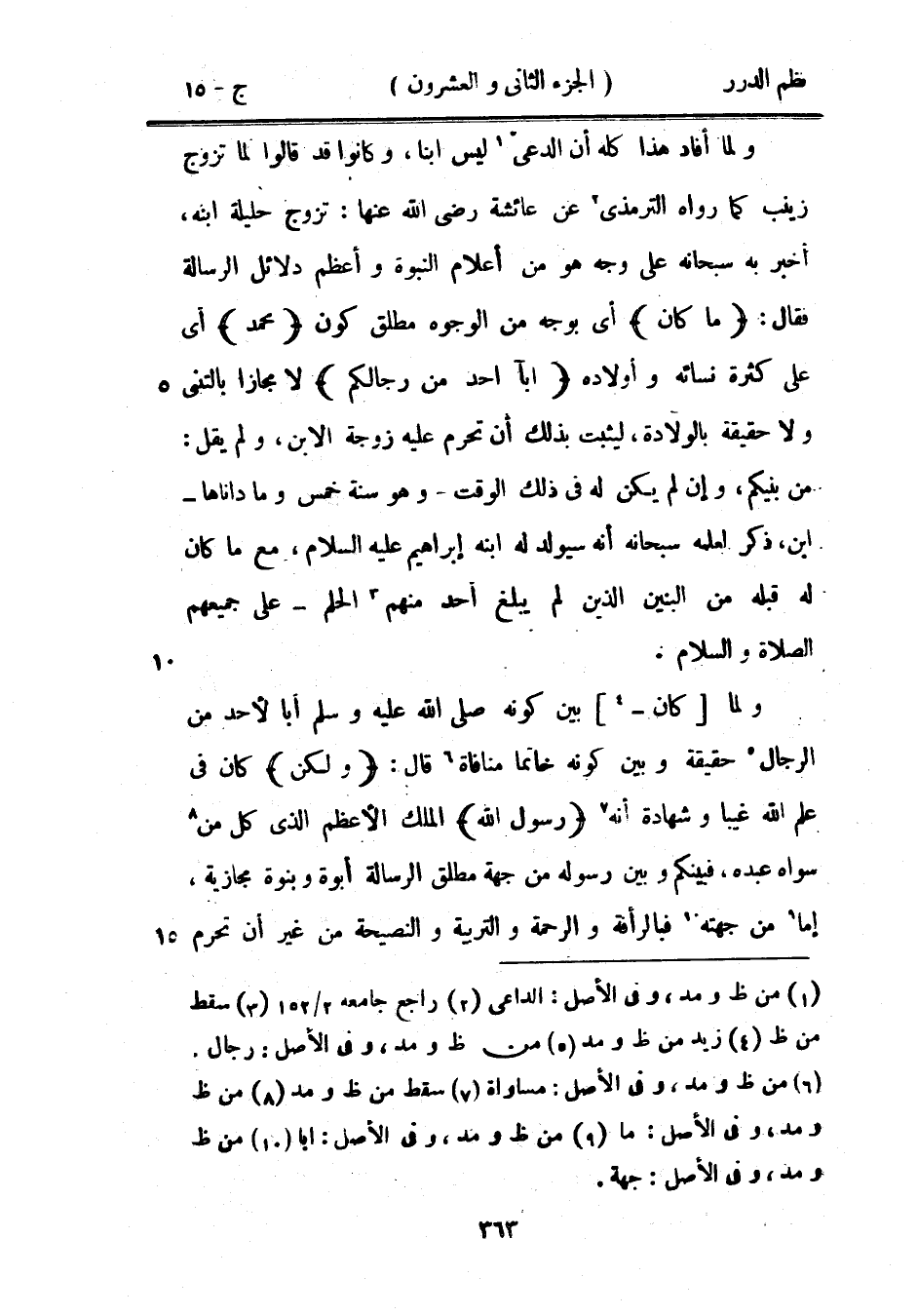 ولما أفاد هذا كله أن الدعي ليس ابناً، وكانوا قد قالوا لما تزوج زينب كما رواه الترمذي عن عائشة رضي الله عنها: تزوج حليلة ابنه، أخبر به سبحانه على وجه هو من أعلام النبوة وأعظم دلائل الرسالة فقال: {ما كان} أي بوجه من الوجوه مطلق كون {محمد} أي على كثرة نسائه وأولاده {أبا أحد من رجالكم} لا مجازاً بالتبني ولا حقيقة بالولادة، ليثبت بذلك أن تحرم عليه زوجة الابن، ولم يقل: من بينكم، وإن لم يكن له في ذلك الوقت وهو سنة خمس وما داناها - ابن، ذكر لعلمه سبحانه أنه سيولد له ابنه إبراهيم عليه السلام، ومع ما كان قبله من البنين الذين لم يبلغ أحد منهم الحلم - على جميعهم الصلاة والسلام.