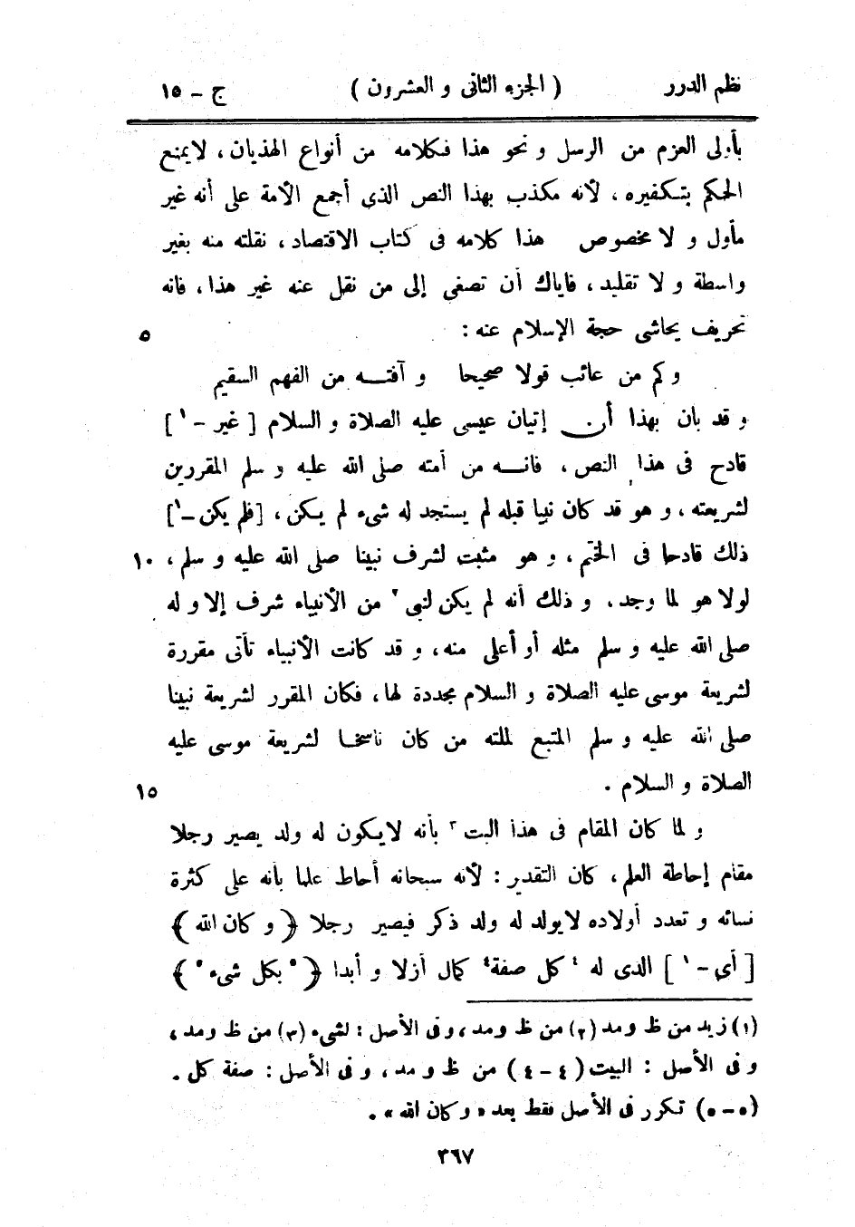 وقد بان بهذا أن إتيان عيسى عليه الصلاة والسلام غير قادح في هذا النص، فإنه من أمته صَلَّى اللهُ عَلَيْهِ وَسَلَّمَ المقررين لشريعته، وهو قد كان نبياً قبله لم يستجد له شيء لم يكن، فلم يكن ذلك قادحاً في الختم وهو مثبت لشرف نبيناً صَلَّى اللهُ عَلَيْهِ وَسَلَّمَ، ولولا هو لما وجد، وذلك أنه لم يكن لنبي من الأنبياء شرف إلا وله صَلَّى اللهُ عَلَيْهِ وَسَلَّمَ مثله أو أعلى منه، وقد كانت الأنبياء تأتي مقرره لشريعة موسى عليه الصلاة والسلام مجددة لها، فكان المقرر لشريعة نبينا صَلَّى اللهُ عَلَيْهِ وَسَلَّمَ المتبع لملته من كان ناسخاً لشريعة موسى عليه الصلاة والسلام.