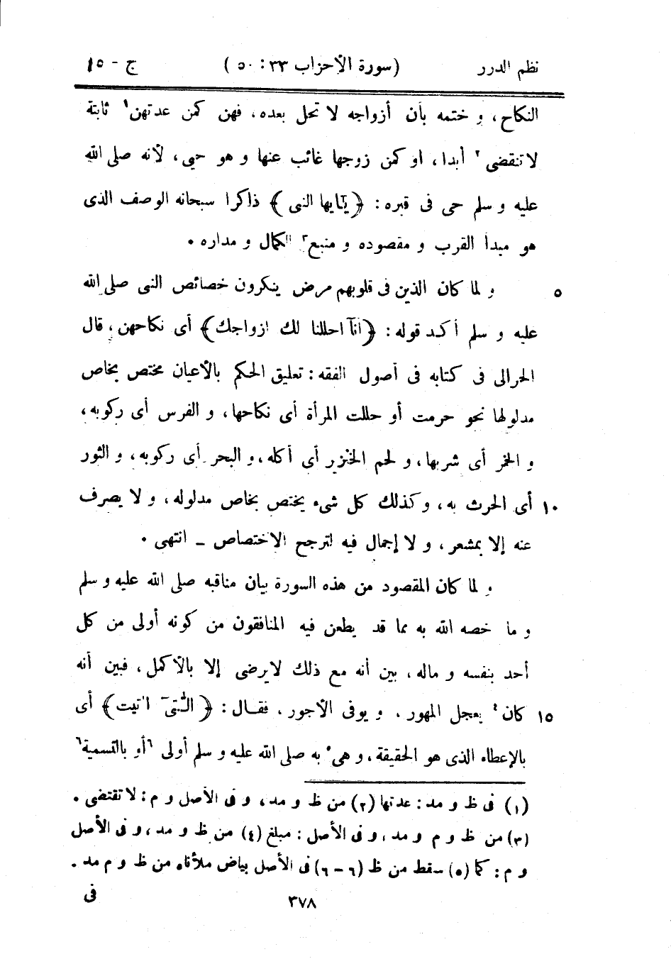 ولما كان الذين في قلوبهم مرض ينكرون خصائص النبي صَلَّى اللهُ عَلَيْهِ وَسَلَّمَ أكد قوله: {إنا أحللنا لك أزواجك} أي نكاحهن، قال الحرالي في كتابه في أصول الفقه: تعليق الحكم بالأعيان مختص بخاص مدلولها نحو حرمت أو حللت المرأة أي نكاحها، والفرس أي ركوبه، والخمر أي شربها، ولحم الخنزير أي أكله، والبحر أي ركوبه، والثور أي الحرث به، وكذلك كل شيء يختص بخاص مدلوله، ولا يصرف عنه إلا بمشعر، ولا إجمال فيه لترجح الاختصاص - انتهى.