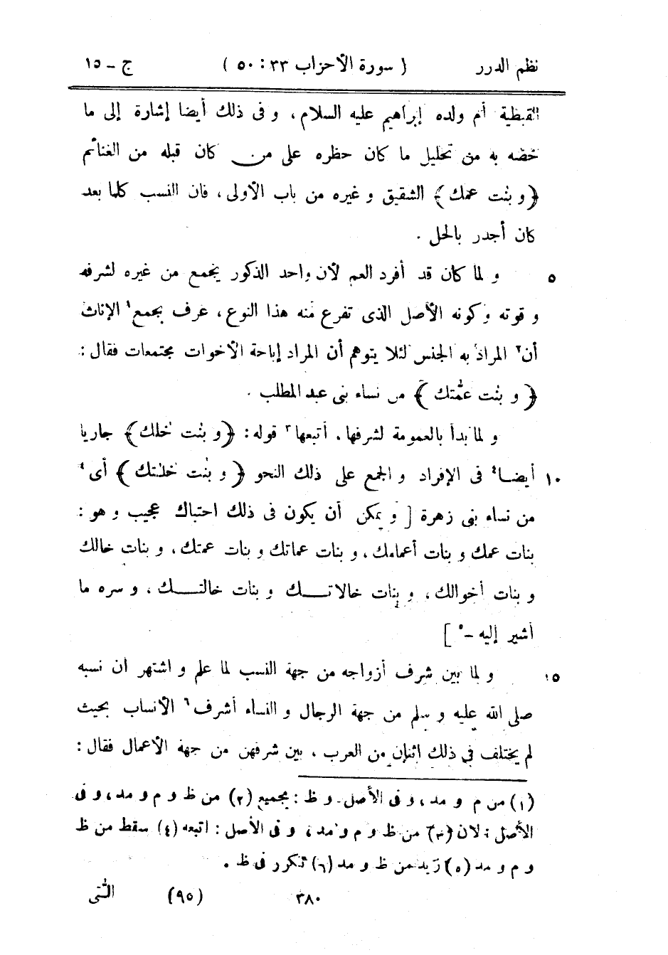 ولما كان قد أفرد العم لأن واحد الذكور يجمع من غيره لشرفه وقوته وكونه الأصل الذي تفرع منه هذا النوع، عرف بجميع الإناث أن المراد به الجنس لئلا يتوهم أن المراد إباحة الأخوات مجتمعات فقال: {وبنات عماتك} من نساء بني عبد المطلب.