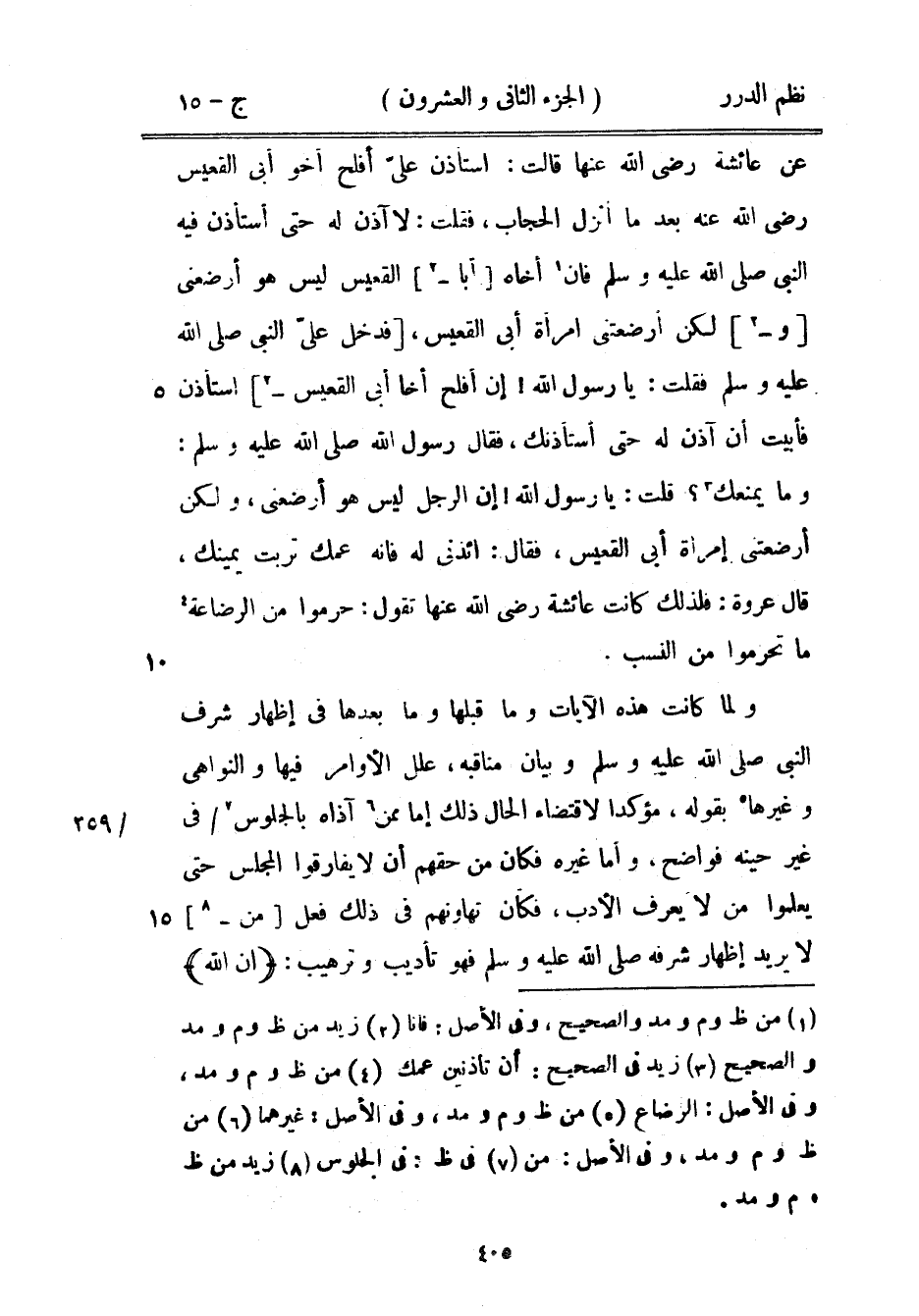 عن عائشة رضي الله عنها قالت: «أستأذن عليّ أفلح أخو أبي القعيس رضي الله عنه بعد ما أنزل الحجاب، فقلت: لا آذن له حتى استأذن فيه النبي صَلَّى اللهُ عَلَيْهِ وَسَلَّمَ فإن أخاه أبا القعيس ليس هو أرضعني ولكن أرضعتني امرأة أبي القعيس، فدخل عليّ النبي صَلَّى اللهُ عَلَيْهِ وَسَلَّمَ فقلت: يا رسول الله! إن أفلح أخا أبي القعيس استأذن فأبيت أن آذن له حتى أستأذنك، فقال رسول الله صَلَّى اللهُ عَلَيْهِ وَسَلَّمَ: وما يمنعك؟ قلت: يا رسول الله! إن الرجل ليس هو أرضعني، ولكن أرضعتني امرأة أبي القعيس، فقال: ائذني له فإنه عمك تربت يمينك، قال عروة: فلذلك كانت عائشة رضي الله عنها تقول: حرموا من الرضاعة ما تحرموا من النسب» .