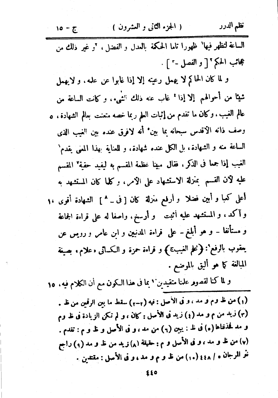 الساعة لتظهر فيها ظهوراً تاماً الحكمة بالعدل والفضل، وغير ذلك من عجائب الحكم والفصل.