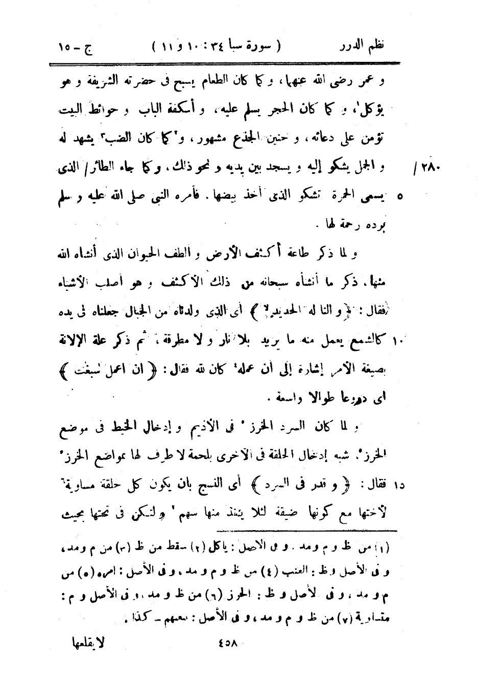 ولما كان السرد الخرز في الأديم وإدخال الخيط في موضع الخرز شبه إدخال الحلقة في الأخرى بلحمة لا طرف لها بمواضع الخرز فقال: {وقدر في السرد} أي النسج بأن يكون كل حلقة مساوية لأختها مع كونها ضيقة لئلا ينفذ منها سهم ولتكن في تحتها بحيث