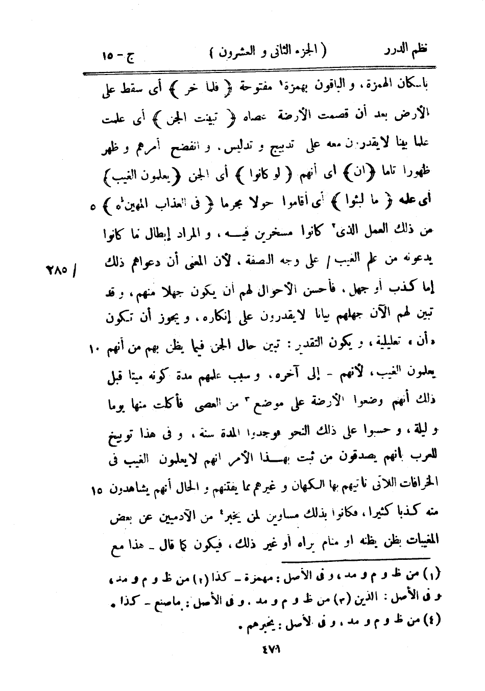 بإسكان الهمزة، والباقون بهمزة مفتوحة {فلما خر} أي سقط على الأرض بعد أن قصمت الأرضة عصاه {تبينت الجن} أي علمت علماً بيناً لا يقدرون معه على تدبيج وتدليس، وانفضح أمرهم وظهر ظهوراً تاماً {أن} أي أنهم {لو كانوا} أي الجن {يعلمون الغيب} أي علمه {ما لبثوا} أي أقاموا حولاً مجرماً {في العذاب المهين *} من ذلك العمل الذي كانوا مسخرين فيه، والمراد إبطال ما كانوا يدعونه من علم الغيب على وجه الصفة، لأن المعنى أن دعواهم ذلك إما كذب أو جهل، فأحسن الأحوال لهم أن يكون جهلاً منهم، وقد تبين لهم الآن جهلهم بياناً لا يقدرون على إنكاره، ويجوز أن تكون «أن» تعليلية، ويكون التقدير: تبين حال الجن فيما يظن بهم من أنهم يعلمون الغيب، لأنهم إلى آخره، وسبب علمهم مدة كونه ميتاً قبل ذلك أنهم وضعوا الأرضة على موضع من العصا فأكلت منها يوماً وليلة، وحسبوا على ذلك النحو فوجدوا المدة سنة، وفي هذا توبيخ للعرب أنهم يصدقون من ثبت بهذا الأمر أنهم لا يعلمون الغيب في الخرافات اللاتي تأتيهم بها الكهان وغيرهم مما يفتنهم والحال أنهم يشاهدون منه كذباً كبيراً، فكانوا بذلك مساوين لمن يخبر من الآدميين عن بعض المغيبات بظن يظنه او منام يراه أو غير ذلك، فيكون كما قال - هذا مع