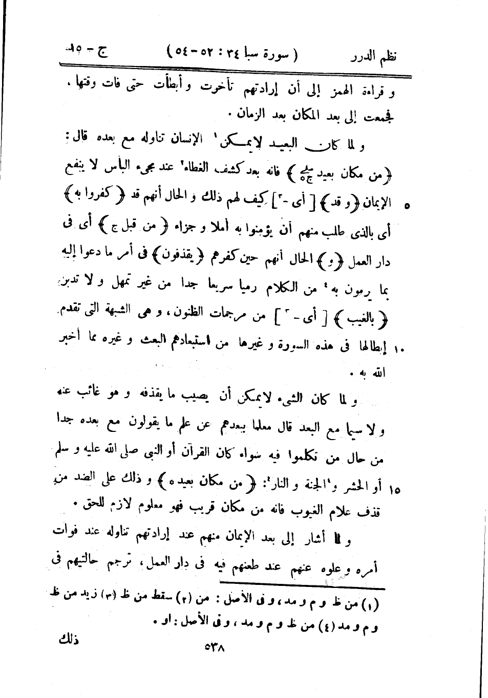 وقراءة الهمز إلى أن إرادتهم تأخرت وأبطأت حتى فات وقتها، فجمعت إلى بعد المكان بعد الزمان.