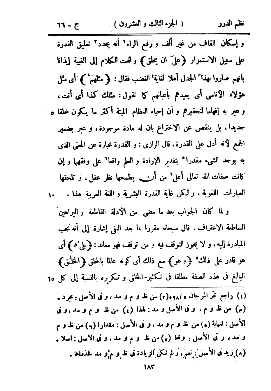 وإسكان القاف من غير ألف ورفع الراء أنه يجدد تعليق القدرة على سبيل الاستمرار {على أن يخلق} ولفت الكلام إلى الغيبة إيذابناً بأنهم صاروا بهذا الجدل أهلاً لغاية الغضب فقال: {مثلهم} أي مثل هؤلاء الأناسي أي يعيدهم بأعيانهم كما تقول: مثلك كذا أي أنت، وعبر به إفهاماً لتحقيرهم وأن إحياء العظام الميتة أكثر ما يكون خلقاً جديداً، بل ينقص عن الاختراع بأن له مادة موجودة، وعبر بضمير الجمع لأنه أدل على القدرة، قال الرازي: والقدرة عبارة عن المعنى الذي به يوجد الشيء مقدراً بتقدير الإرادة والعلم واقعاً على وفقهما وإن كانت صفات الله تعالى أعلى من أن يطمحها نظر عقل، وتلحقها العبارات اللغوية، ولكن غاية القدرة البشرية واللغة العربية هذا.