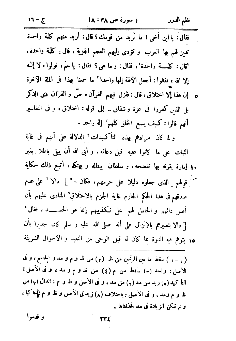 «أريد منهم كلمة واحدة تدين لهم بها العرب وتؤدي إليهم العجم الجزية، قال: كلمة واحدة، قال: كلمة واحدة، فقال: وما هي؟ فقال: يا عم، قولوا» لا إله إلا الله «فقالوا: أجعل الآلهة إلهاً واحداً ما سمعنا بهذا في الملة الآخرة إن إلا اختلاق، قال: فنزل فيهم القرآن» {ص والقرآن ذي الذكر بل الذين كفورا في عزة وشقاق} إلى قوله: {اختلاق} وفي التفاسير أنهم قالوا: كيف يسع الخلق كلهم إله واحد.